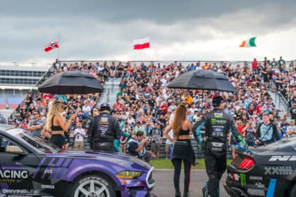 Despite the rain, the competitors threw down some amazing runs, in both qualifying and the tandem battles. Qualifying was highlighted by James Deane's 98, somehow made after the rain had started falling. We were partial to the epic battle between Wiecek and Vaughn Gittin Jr. in the Nos Energy Great Eight, with the two banging doors until the end.