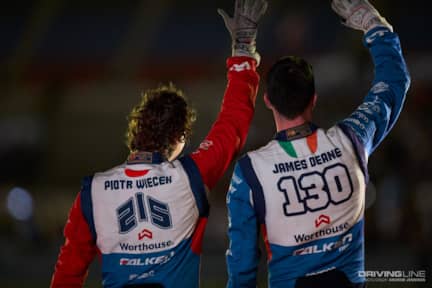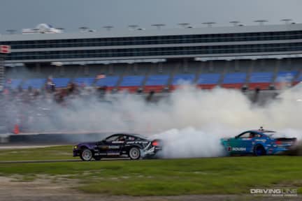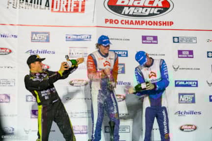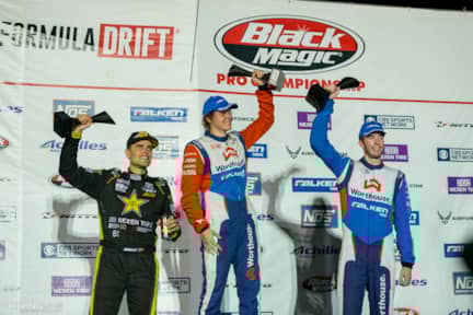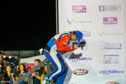 After the rain left and the sun set, the battle in Texas came down to the two Worthouse teammates of Piotr Wiecek and James Deane. Deane, leading the points race, was looking to tighten his grip on the championship, while Wiecek was desperately trying to stay in contention. The two stayed close through the first run, but a mechanical problem derailed Deane in the second one, giving Wiecek the victory. Fedric Aasbo finished third over Team Nitto driver Chelsea DeNofa due to his higher qualifying position.