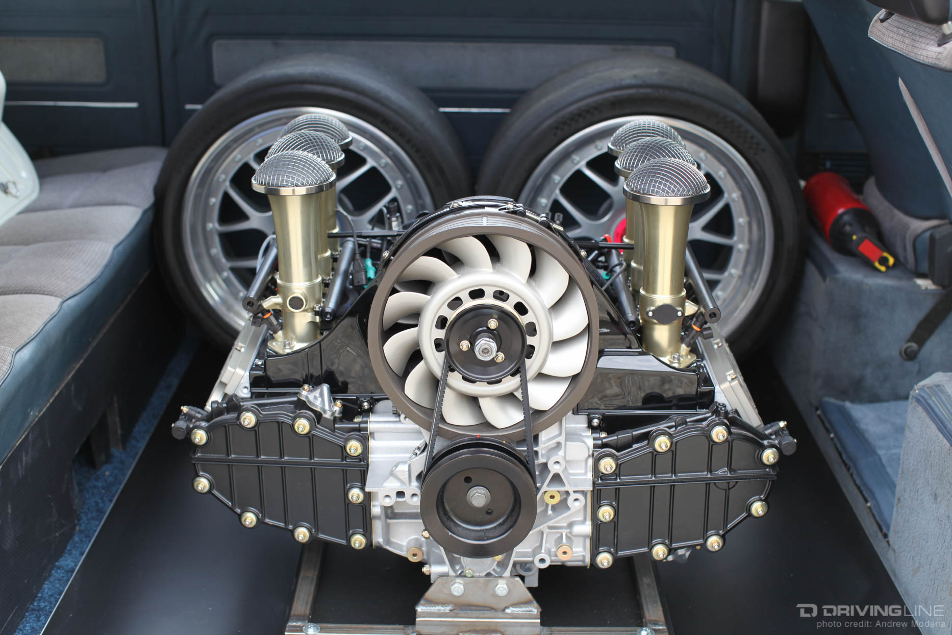 This Vanagon has a 3.6 from a 993 911, and according to the owner, it can reach up to 145 mph, and it has at several racetracks across California. Good thing it has 6-piston Porsche brakes to slow this brick down.
