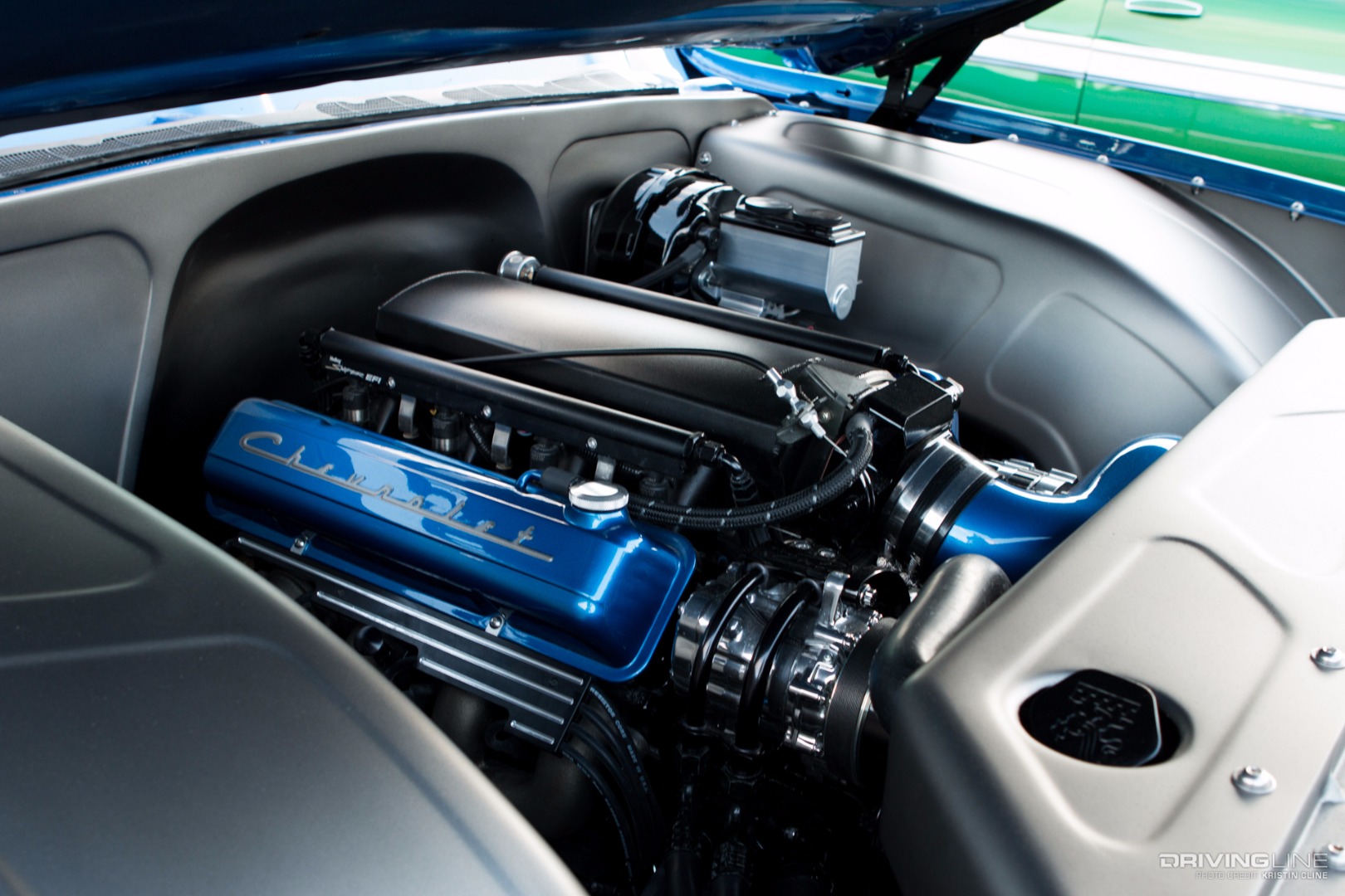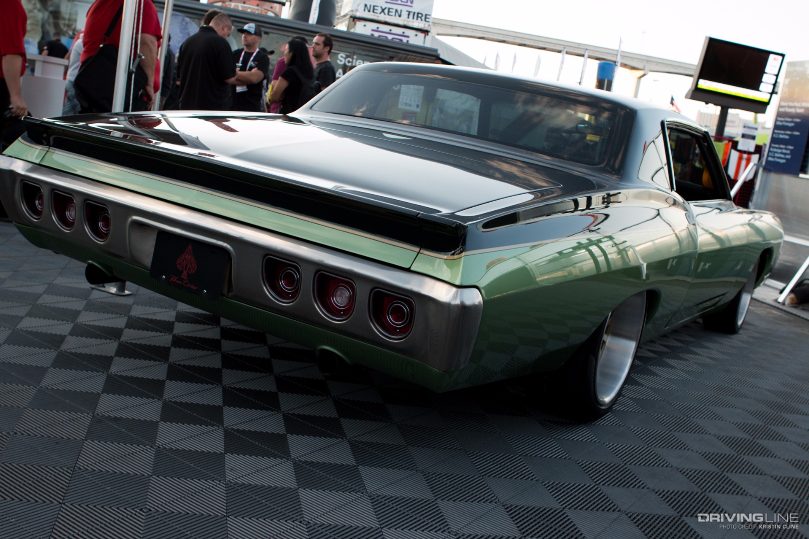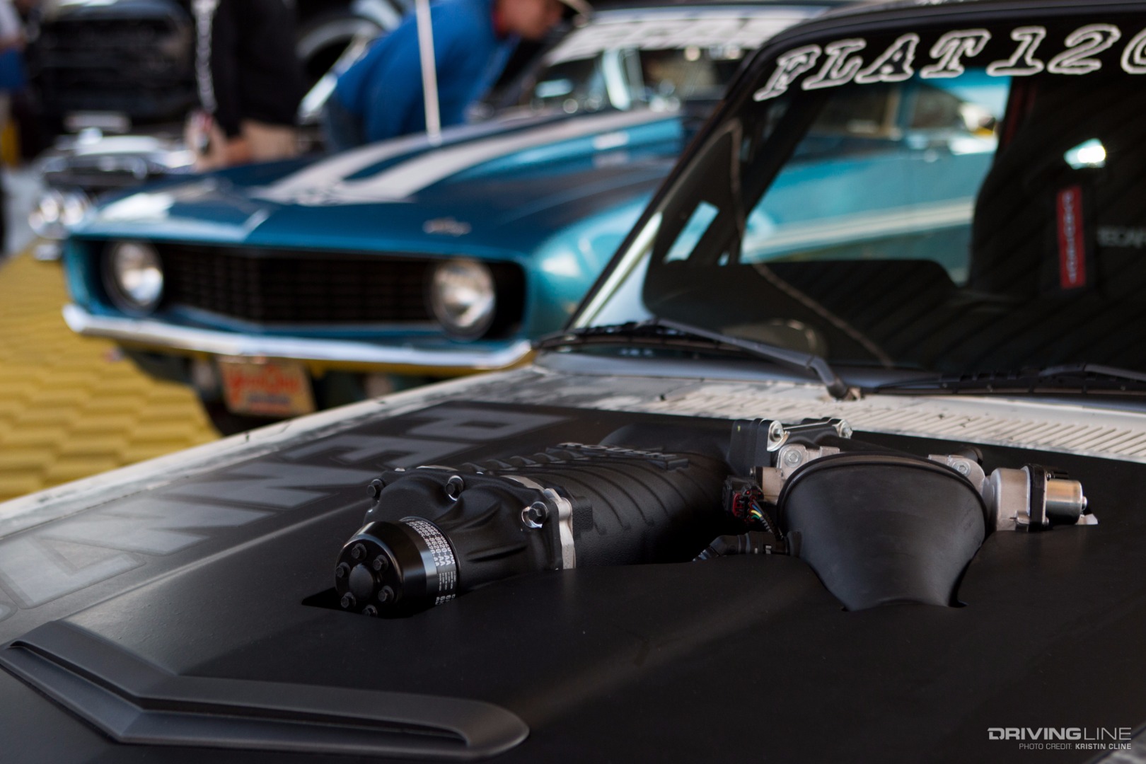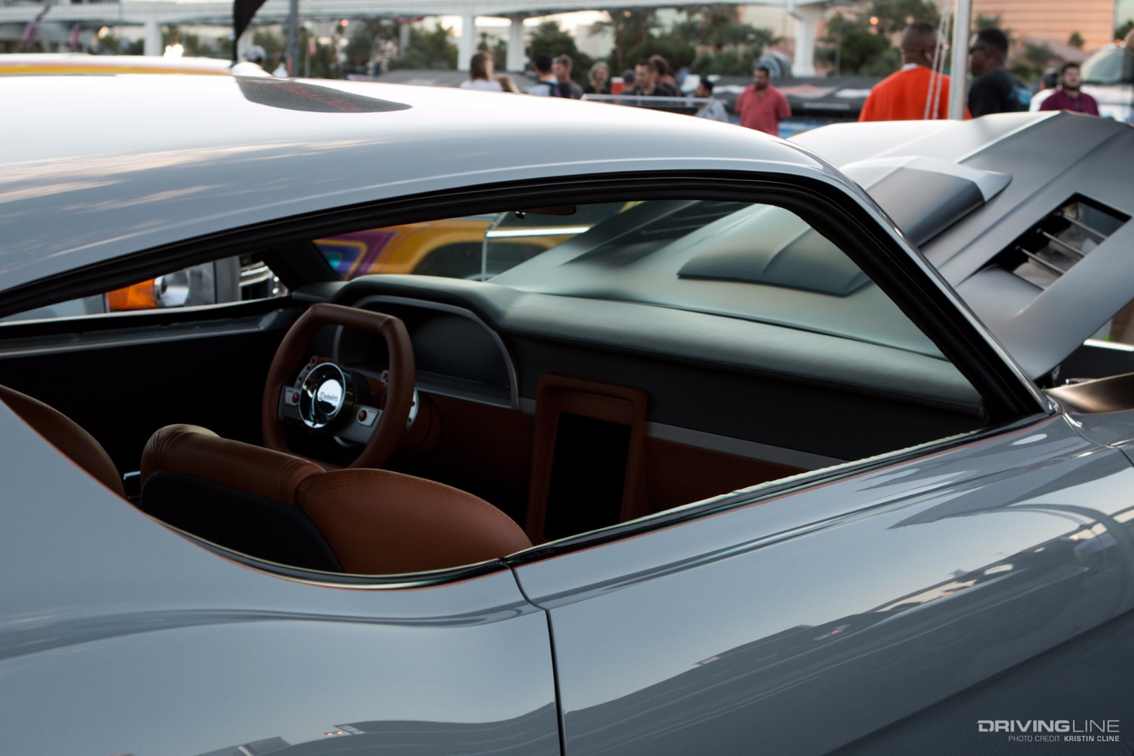 It takes a lot for a grey car to grab your attention, but this '69 Ford Torino made its presence known in a big way within Axalta's booth. Built by B-Line Auto Company, every last detail has been thought of on this build. From endless metal body work and shaping to one-off machined aluminum parts—we particularly like the functional hood scoop and vents that lead up to injection stakes on a 427 Ford engine built by Robert Pond Motorsports.