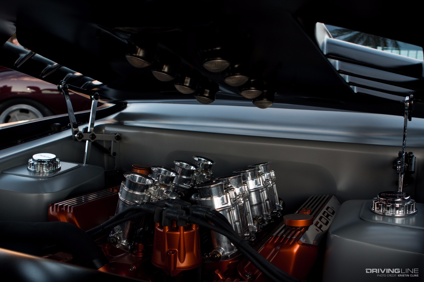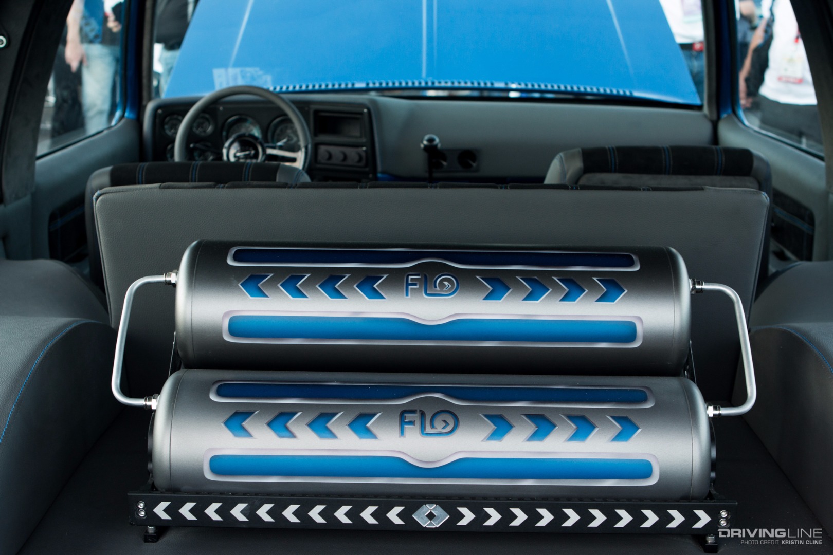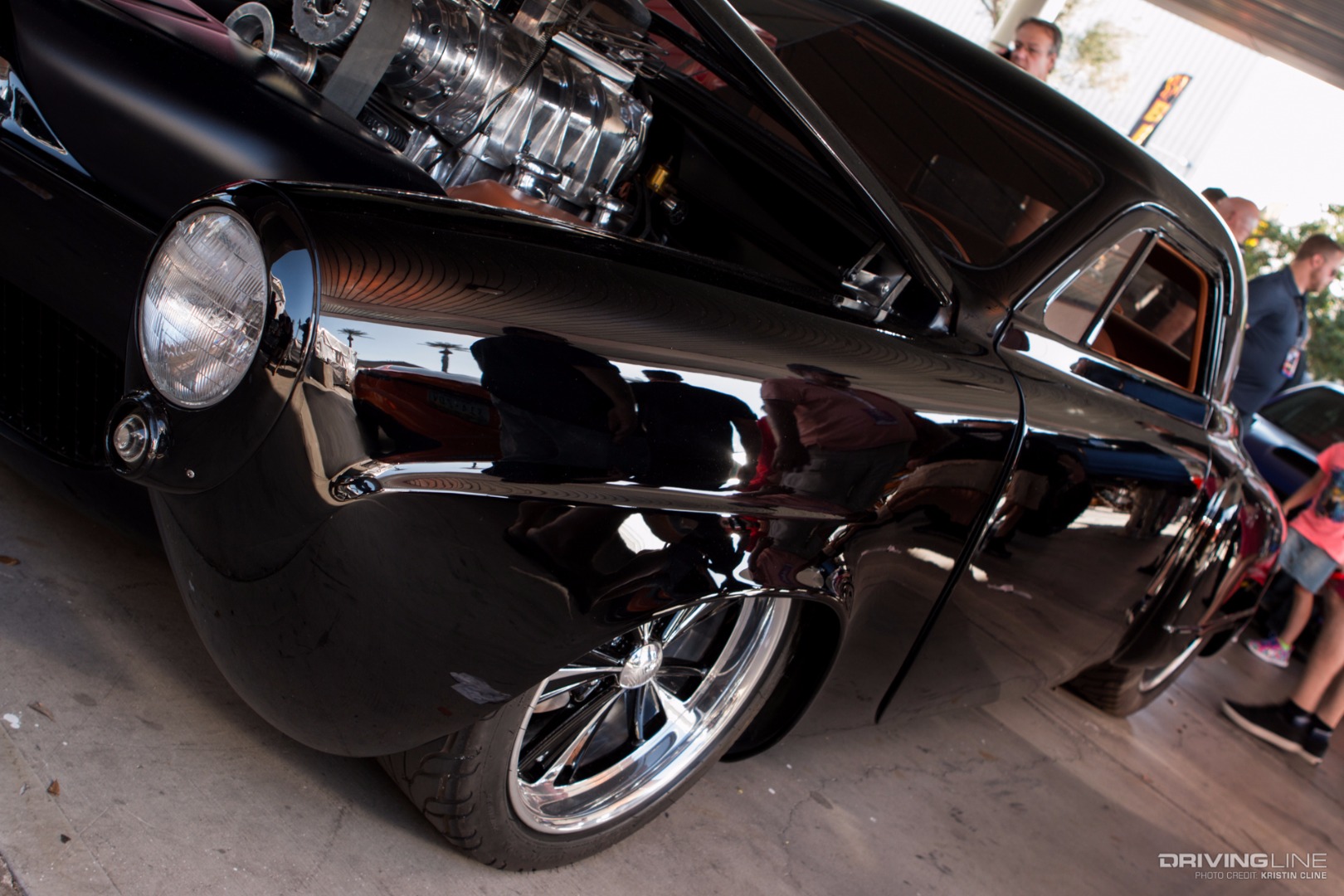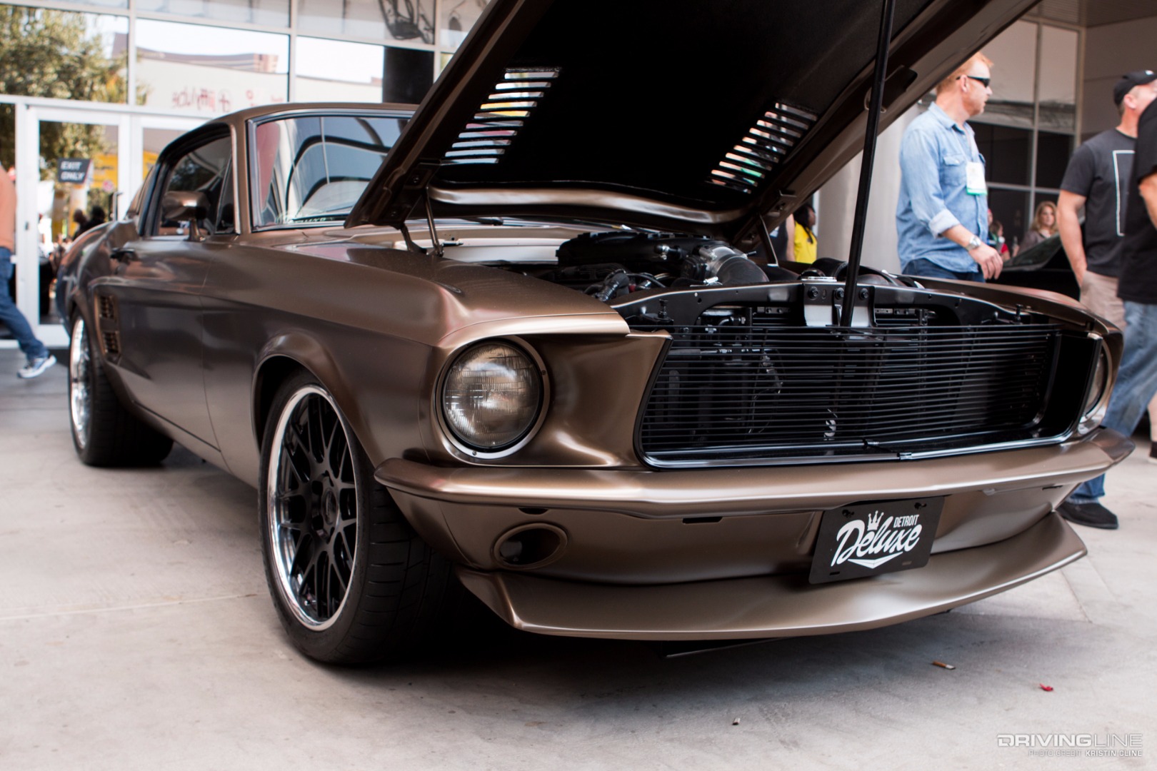 It takes a lot for a grey car to grab your attention, but this '69 Ford Torino made its presence known in a big way within Axalta's booth. Built by B-Line Auto Company, every last detail has been thought of on this build. From endless metal body work and shaping to one-off machined aluminum parts—we particularly like the functional hood scoop and vents that lead up to injection stakes on a 427 Ford engine built by Robert Pond Motorsports.