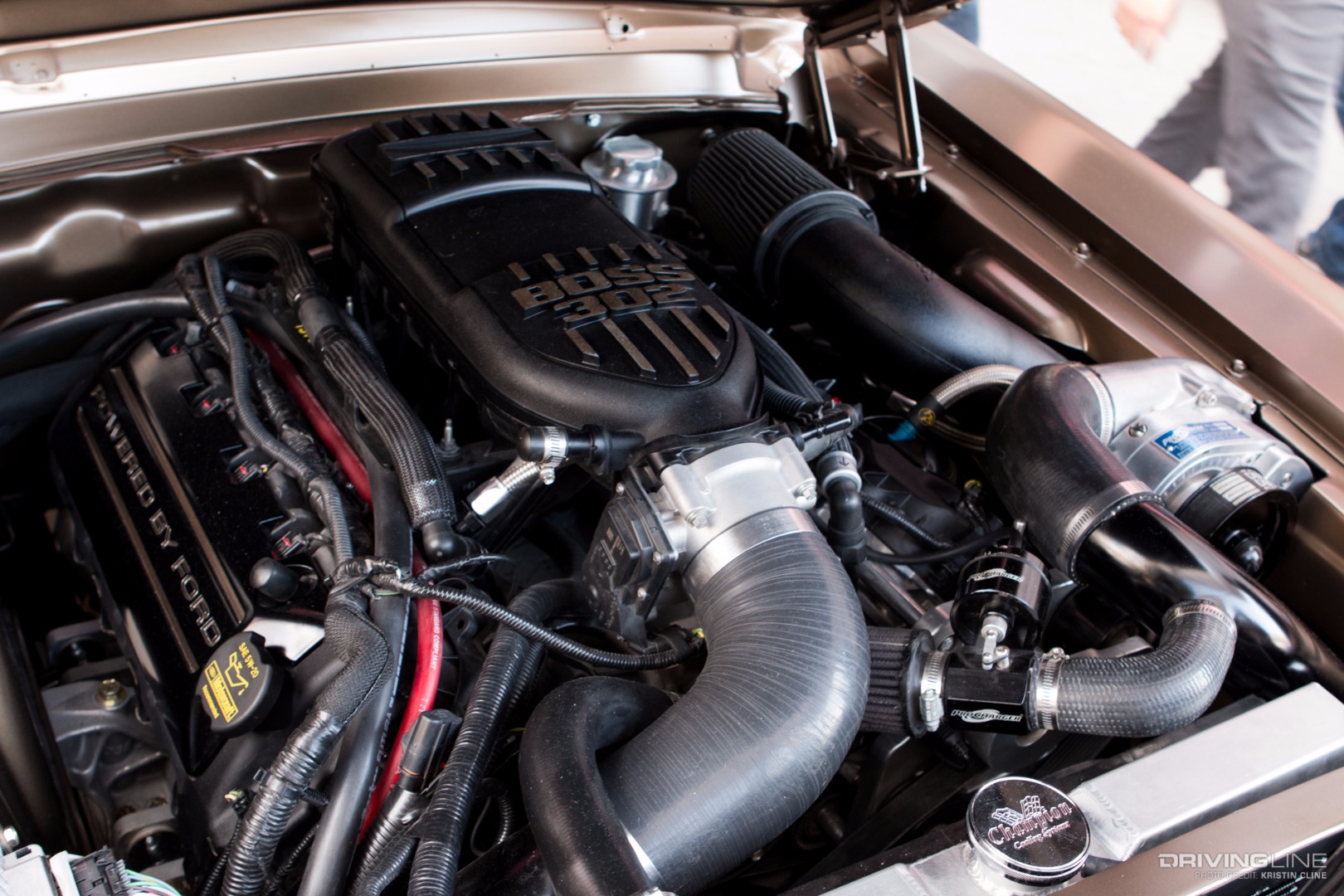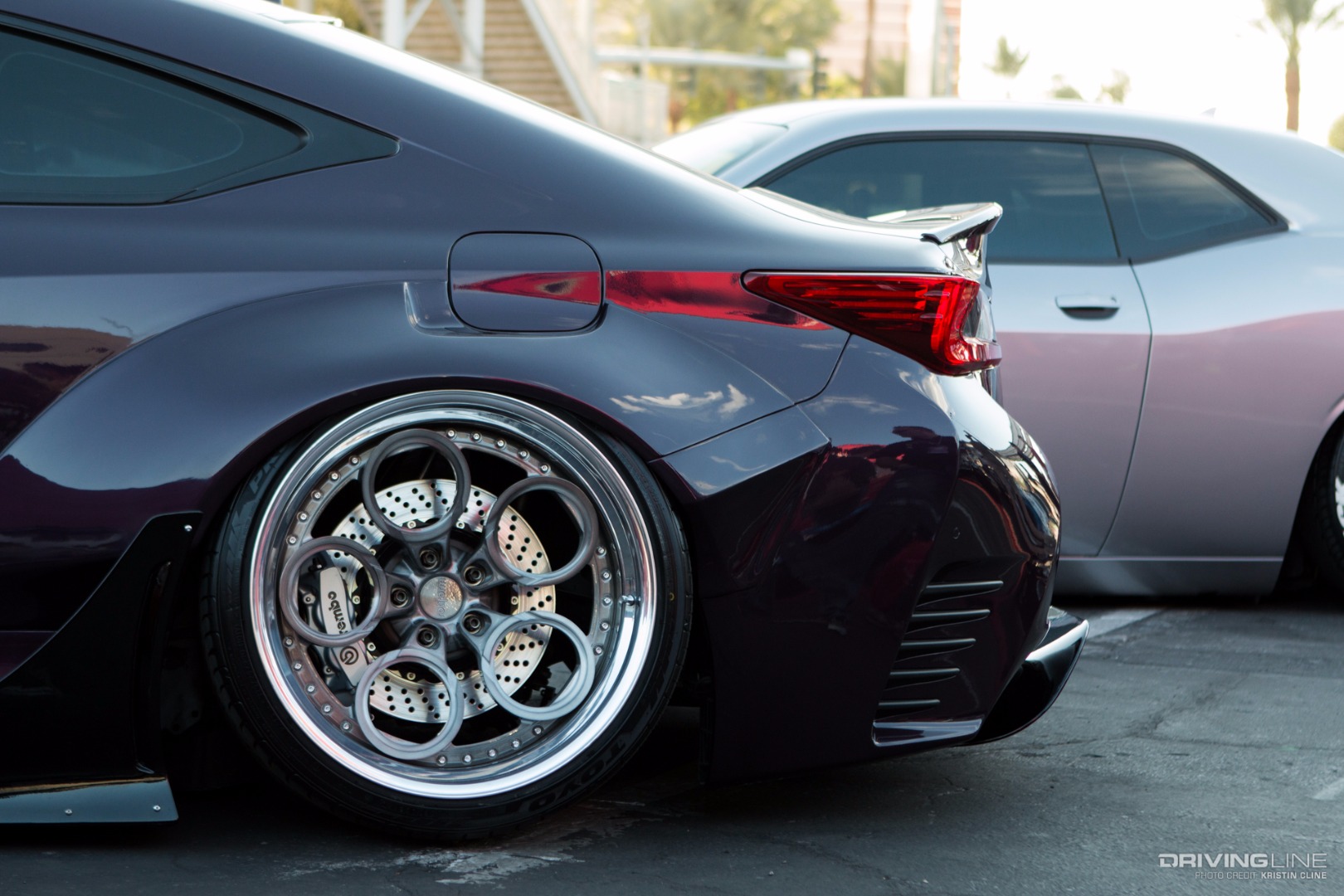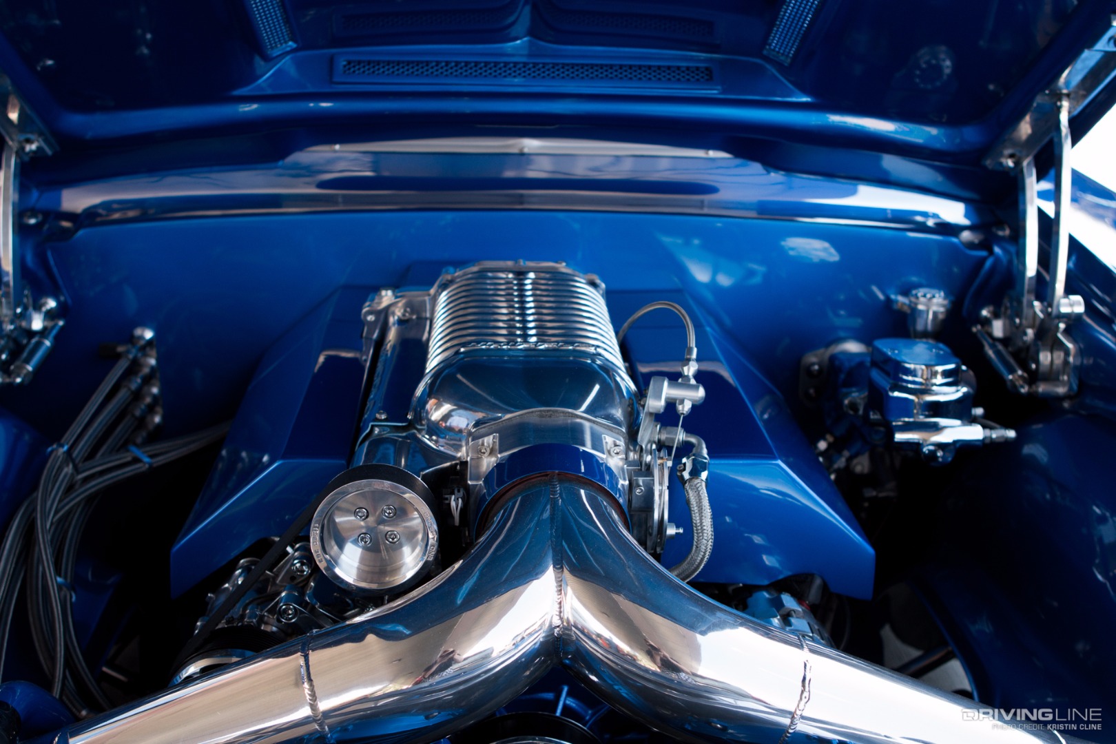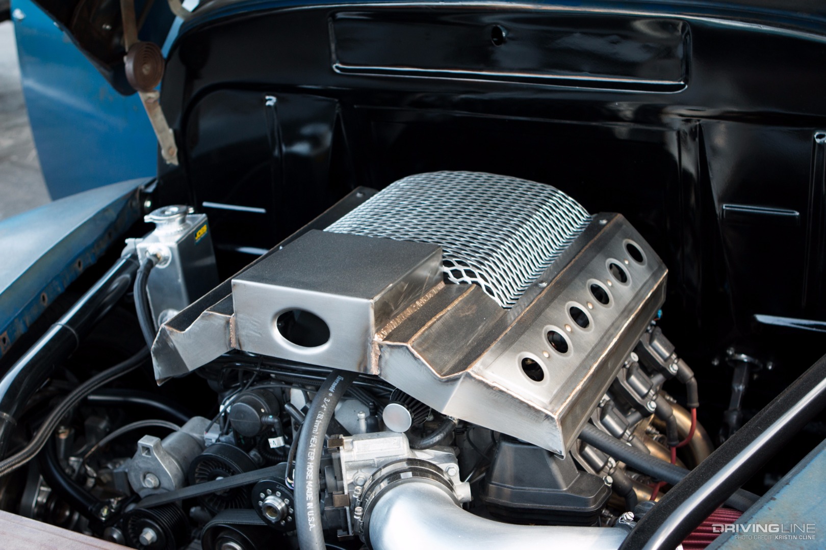 It takes a lot for a grey car to grab your attention, but this '69 Ford Torino made its presence known in a big way within Axalta's booth. Built by B-Line Auto Company, every last detail has been thought of on this build. From endless metal body work and shaping to one-off machined aluminum parts—we particularly like the functional hood scoop and vents that lead up to injection stakes on a 427 Ford engine built by Robert Pond Motorsports.