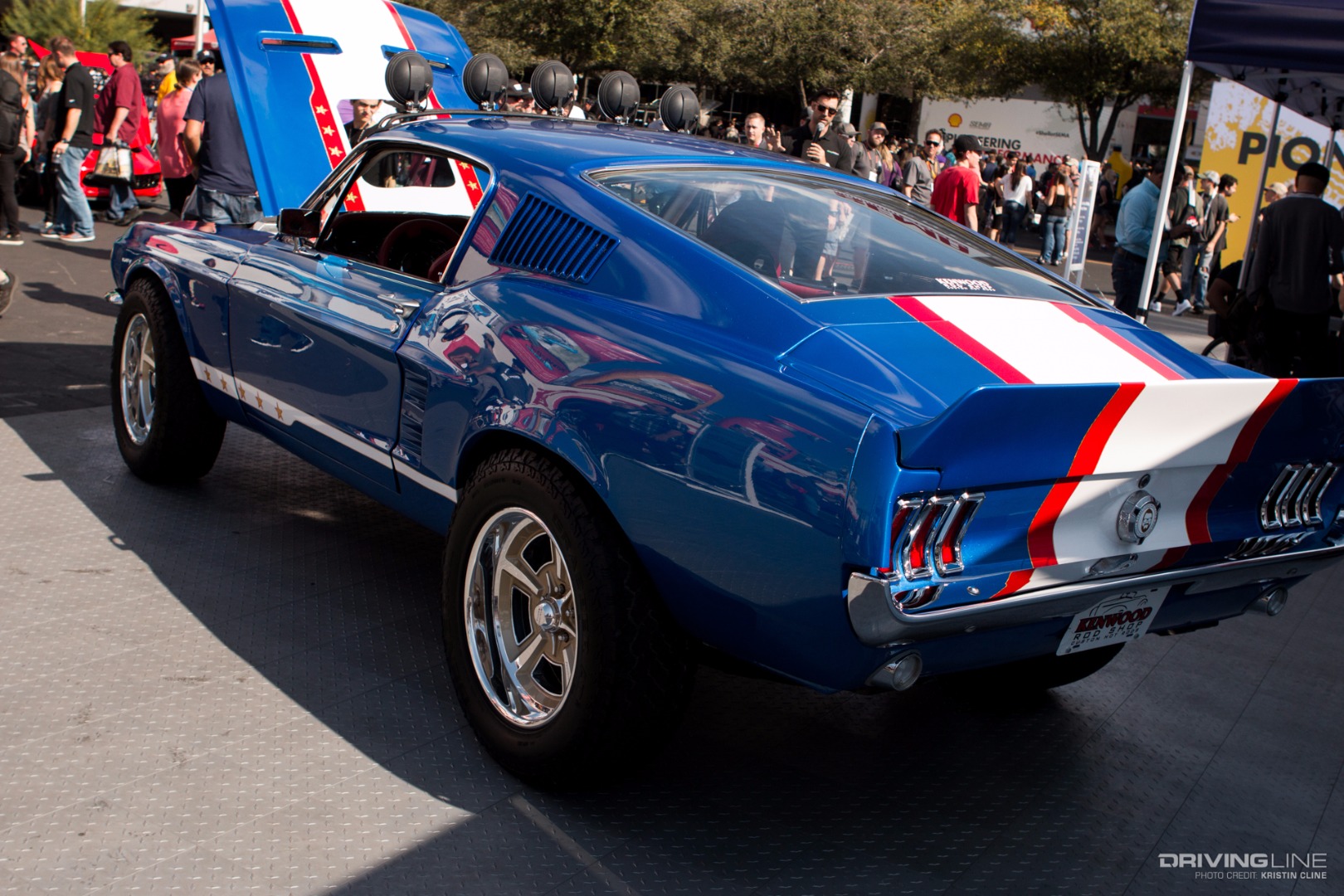 Designed and built this past year by Rutledge Wood alongside K.C. Mathieu and Mike Finnegan, it was on the virtual chopping block during SEMA on Ebay Motors with proceeds benefiting diabetes charity. With an all-American paint scheme, the Mustang's big tires and rally-inspired Hella lights aren't something you see all the time on a pony car—but doesn't it fit just right?