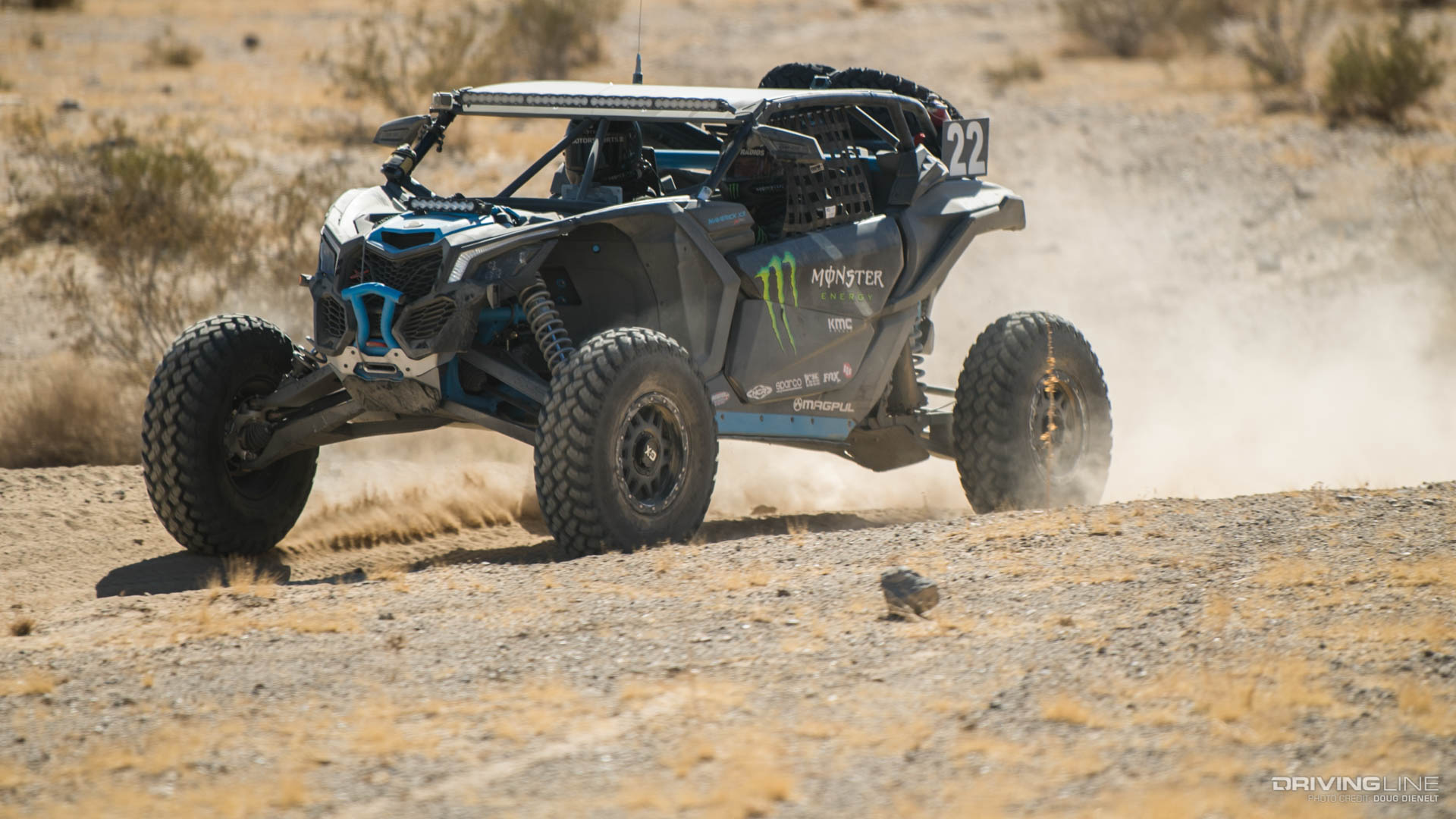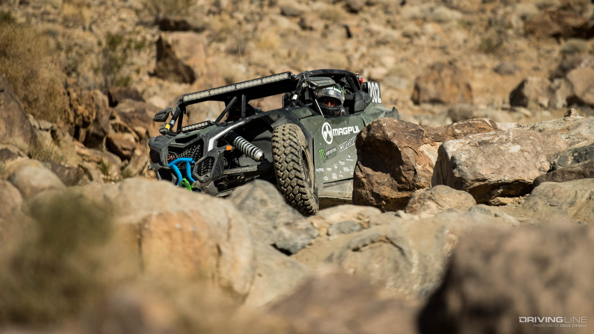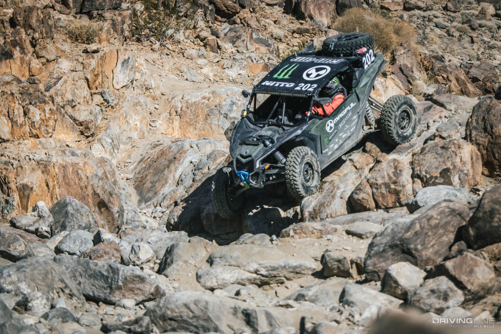 After a grueling day of racing through the rocks and desert, Mitch Guthrie Jr. crossed the finish line victorious at the Can-Am KOH UTV Race by HCR. These UTVs are given the same terrain as the unlimited 4400 cars do, on 29" tires rather than 40", racing 2 laps rather than 3 as they do on Friday. At the finish it was a family affair for the second year in a row, with Mitch's father, Mitch Guthrie Sr. following along in third (2017 found father/son Shannon & Wayland Campbell placed on the podium.) Leading an extremely clean race, Mitch Guthrie Jr. came across the line more than 40 minutes ahead of his closest competitor.