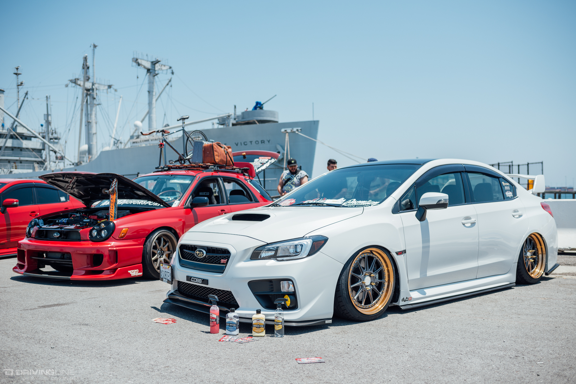 Walking around the huge parking lot that protrudes into the harbor, attendees could see about every branch of modification a Subaru owner could progress around in their ownership. As I stood in one spot near the front of the show, I could look one way and see a line of WRXs that had suspension lifts, knobby tires and mud worn as a second coat of paint; then look the other way and see a couple more laying on the ground with the help of bagged suspension and precise wheel fitment. If that weren’t enough, I could look past both groups and see yet another row ready for track day on dirt or tarmac.