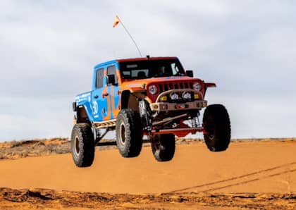 For South Florida Jeep; Fuel created a concave wheel called the SFJ and the 22x14-inch wheels then took advantage of the custom, oversized fenders to fit the huge, aggressive tread 40-inch Nitto Mud Grappler Mud-Terrain tires.