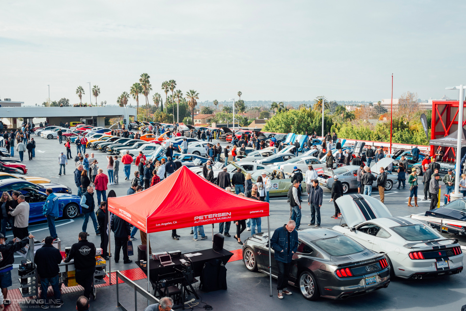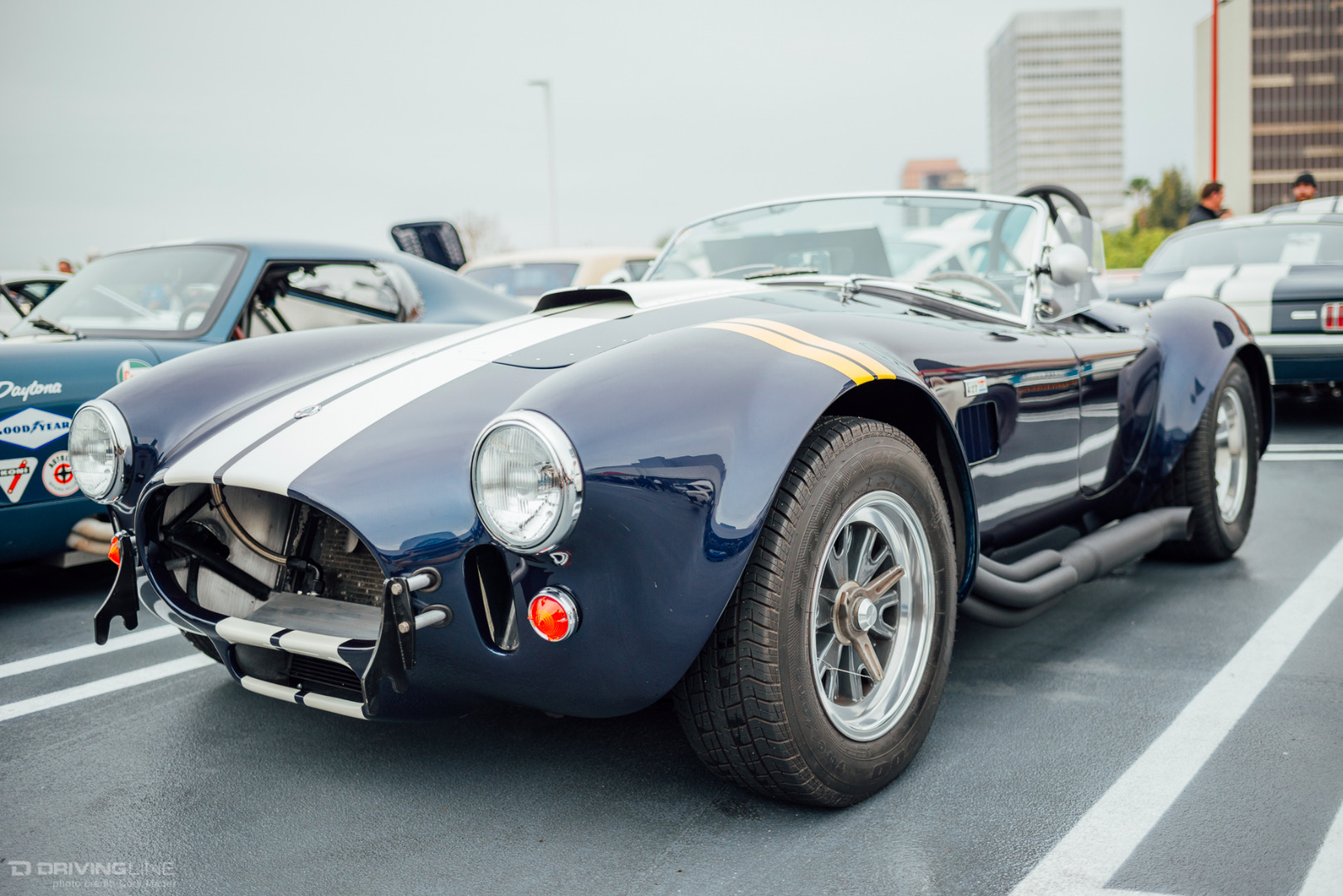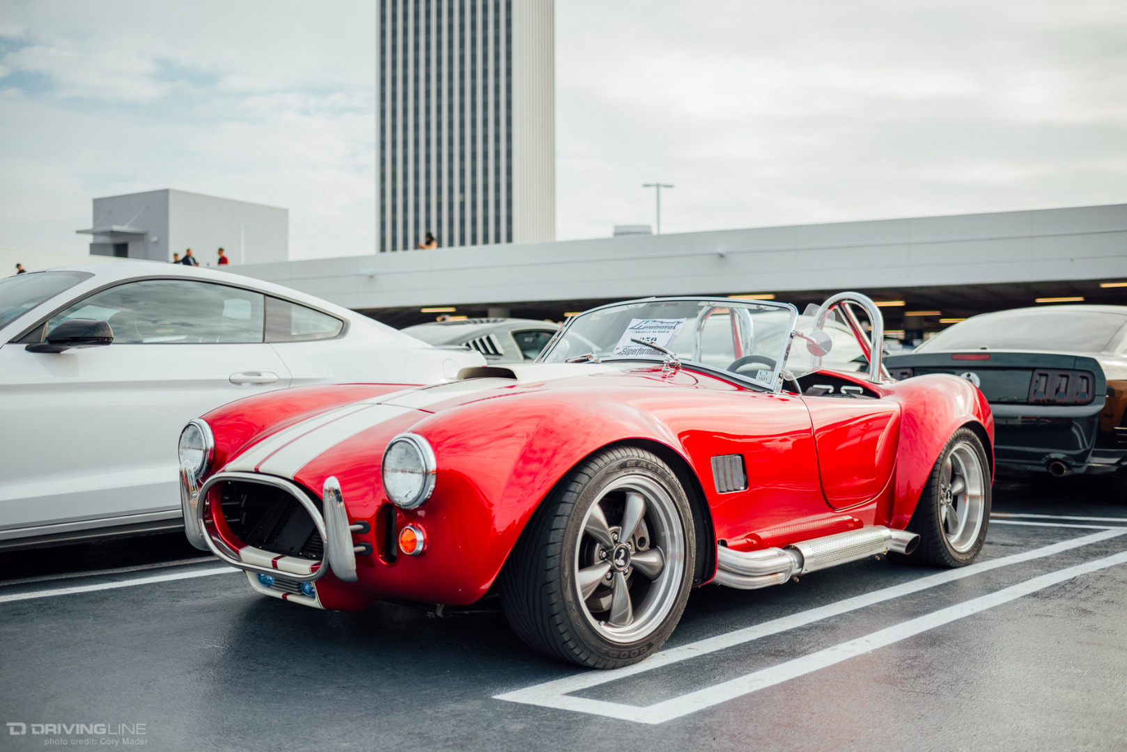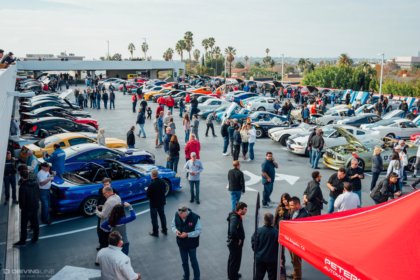 A rare rain-filled California sky was the backdrop to the Petersen’s Shelby Cruise-In this past weekend, but that couldn’t keep hundreds of Shelby, Mustang, and Ford enthusiasts from meeting up on top of the Petersen Automotive Museum in honor of what would have been Shelby’s 93rd birthday. The sheer variety of modifications and stages of restoration was staggering. There was everything from Ford’s newest Shelby GT350R and Super Snake Mustangs to the black Number 1 Cobra deemed the only Cobra worthy of filling the lobby of Carroll Shelby’s funeral to Lynn Park’s best-in-show-winning unrestored barn-find 289 Cobra. If you looked hard enough there was also a hidden Lotus and Alfa Romeo parked back in the parking structure away from the Shelby fray. You can browse the gallery to check out just how many great examples were on display, but make sure to mark your calendars for the next event: the Enzo Ferrari Birthday Cruise-In on February 21st!