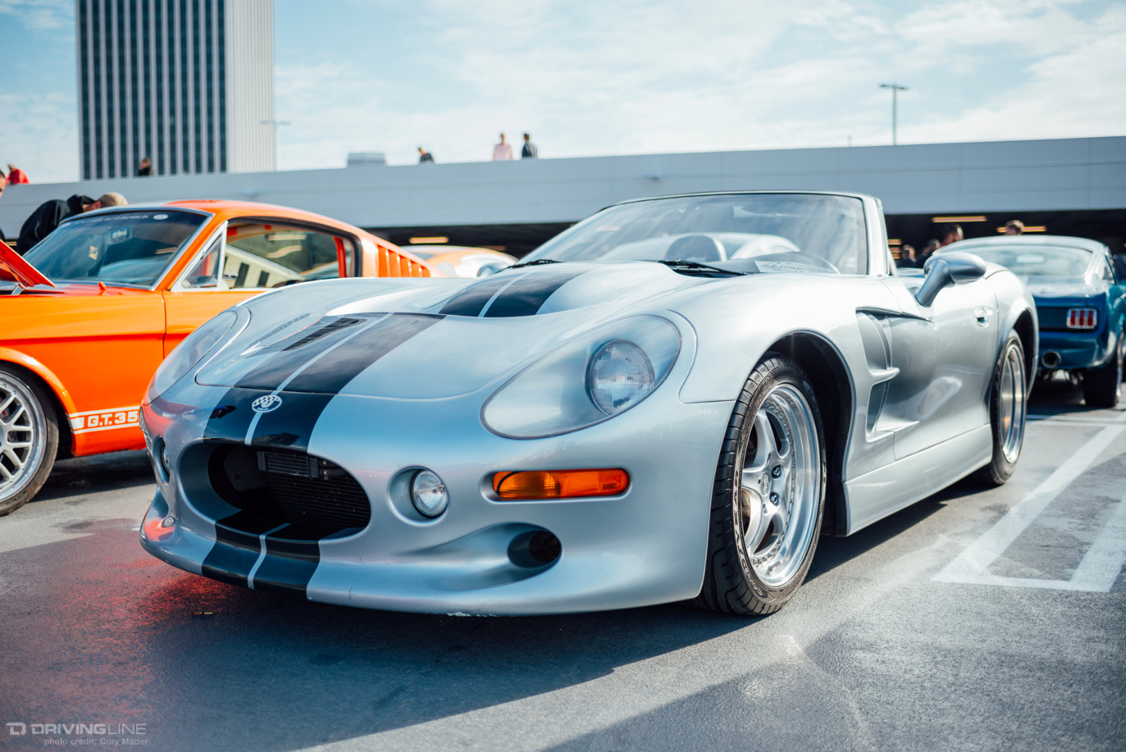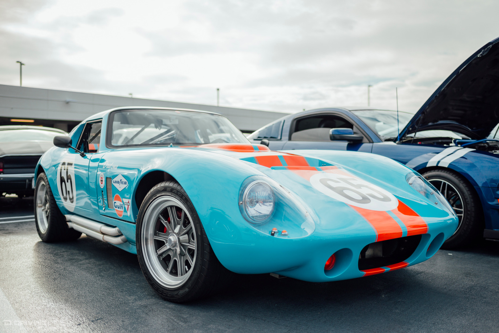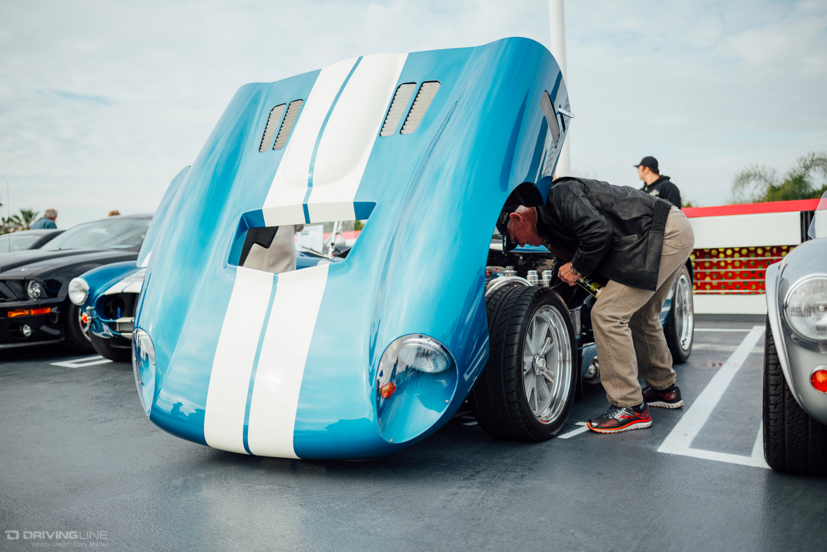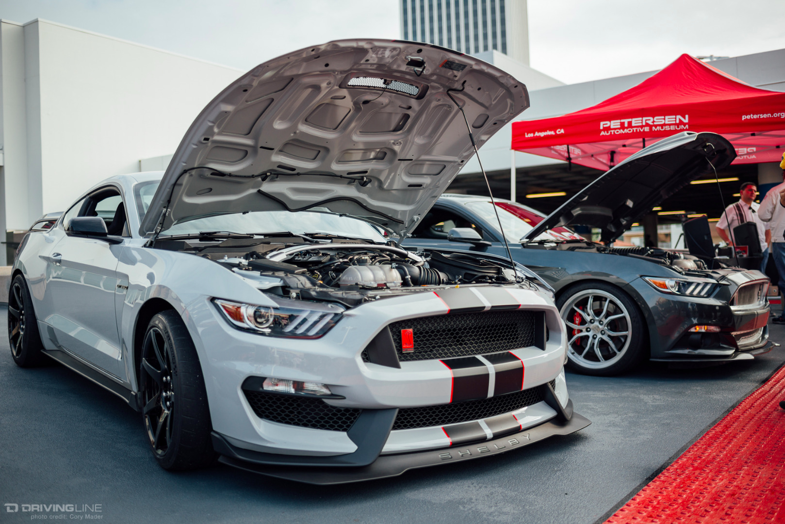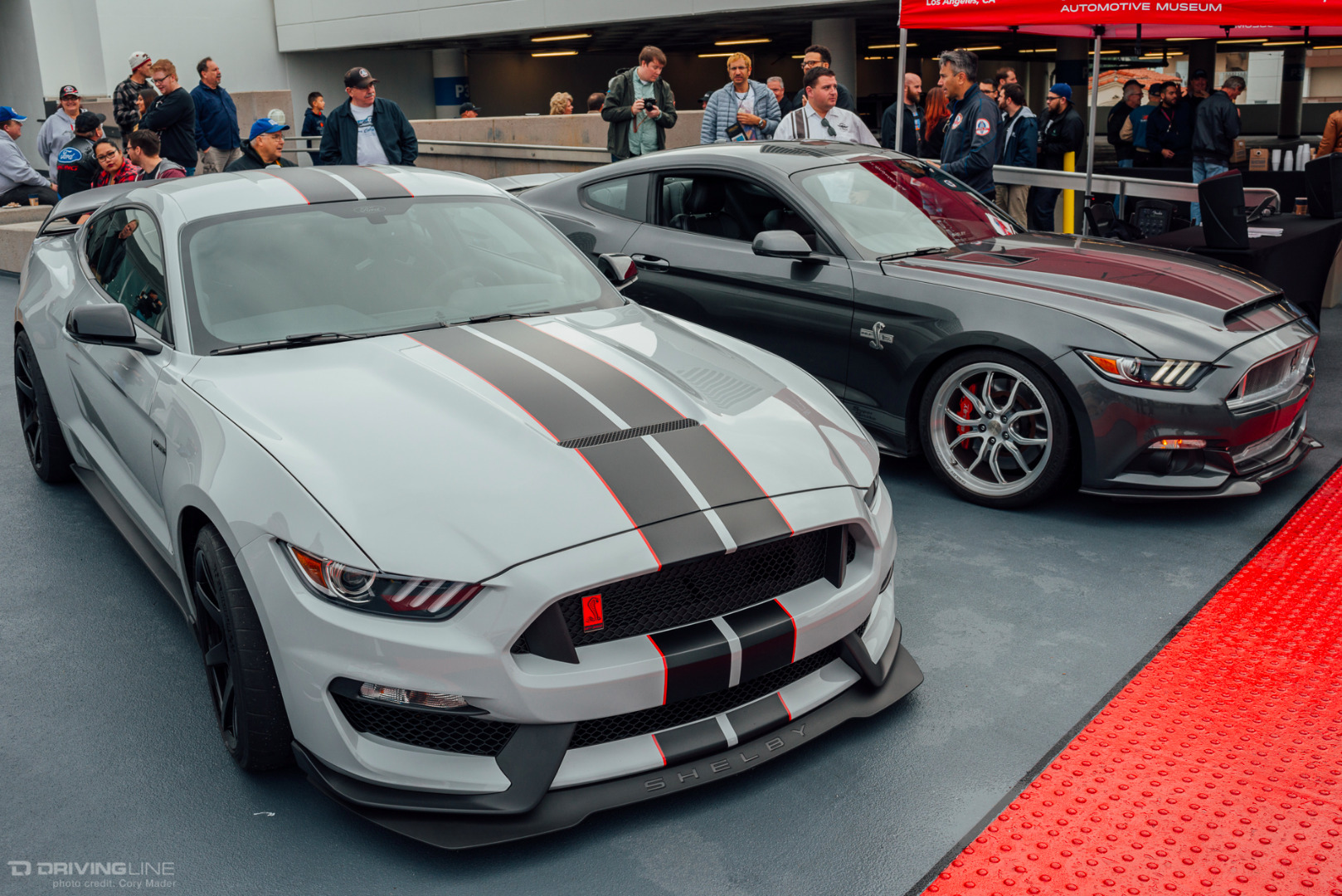 A rare rain-filled California sky was the backdrop to the Petersen’s Shelby Cruise-In this past weekend, but that couldn’t keep hundreds of Shelby, Mustang, and Ford enthusiasts from meeting up on top of the Petersen Automotive Museum in honor of what would have been Shelby’s 93rd birthday. The sheer variety of modifications and stages of restoration was staggering. There was everything from Ford’s newest Shelby GT350R and Super Snake Mustangs to the black Number 1 Cobra deemed the only Cobra worthy of filling the lobby of Carroll Shelby’s funeral to Lynn Park’s best-in-show-winning unrestored barn-find 289 Cobra. If you looked hard enough there was also a hidden Lotus and Alfa Romeo parked back in the parking structure away from the Shelby fray. You can browse the gallery to check out just how many great examples were on display, but make sure to mark your calendars for the next event: the Enzo Ferrari Birthday Cruise-In on February 21st!
