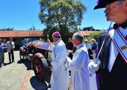 One of the unique aspects of the Carmel Mission Concours is “the blessing of the cars.” A special ritual, similar to the papal blessing of the Ferrari F1 cars prior to the season, Bishop Richard Garcia of the Diocese of Monterey prayerfully sprinkled each of the cars with Holy Water — certainly an act that might add a few miles to these classics.