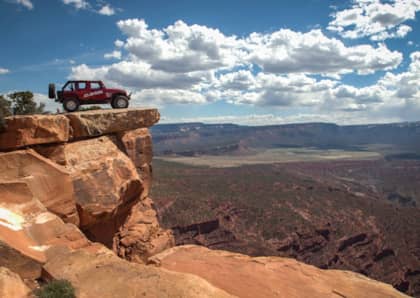 The trail peaks out at the top of a 1,300-foot cliff overlooking the narrows valley below. For those with a stomach for heights, you can drive your rig right up to the edge for a photo.