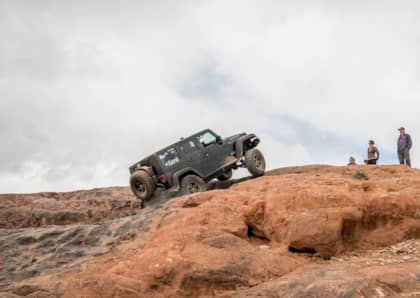 EVO Manufacturing, is a business well known in the Jeep community. Specializing in long-travel suspension systems and cutting edge products for the Jeep Wrangler, the Southern California company is one of the leaders in aftermarket JK parts. Each year, EVO president Mel Wade puts on a trail ride in Moab, Utah, during the annual Easter Jeep Safari. This year’s ride took participants to one of the most epic spots in Moab, the Top of the World trail.