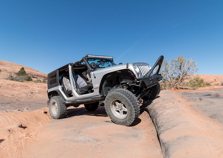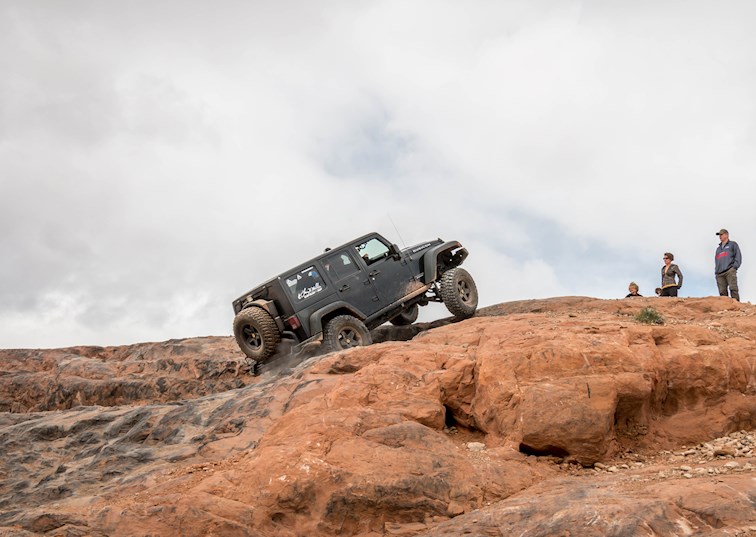 EVO Manufacturing, is a business well known in the Jeep community. Specializing in long-travel suspension systems and cutting edge products for the Jeep Wrangler, the Southern California company is one of the leaders in aftermarket JK parts. Each year, EVO president Mel Wade puts on a trail ride in Moab, Utah, during the annual Easter Jeep Safari. This year’s ride took participants to one of the most epic spots in Moab, the Top of the World trail.