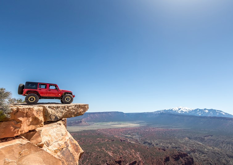 The trail peaks out at the top of a 1,300-foot cliff overlooking the narrows valley below. For those with a stomach for heights, you can drive your rig right up to the edge for a photo.