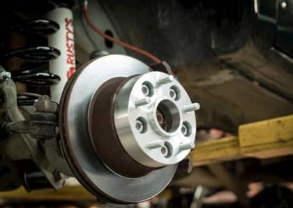 Ideally, the shocks should have ample up and down travel as the suspension cycles. A little research ahead of time can tell you what length shock the vehicle should have for its lift height; all it takes is a tape measure to make sure it’s right once you’re in front of the truck. Another oversight is any kind of leaking oil around the shocks themselves, or below them. This usually indicates the seals are worn and the shock needs to be serviced or replaced. Depending on what kind of shock it is, it can be potentially expensive to replace or difficult to rebuild, so keep that in mind.