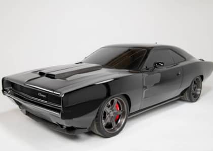 It starts with the exterior, where a carbon fiber wide body maintains the basic proportions of the ’68 Charger but pumps things up with massively widened fenders front and rear.