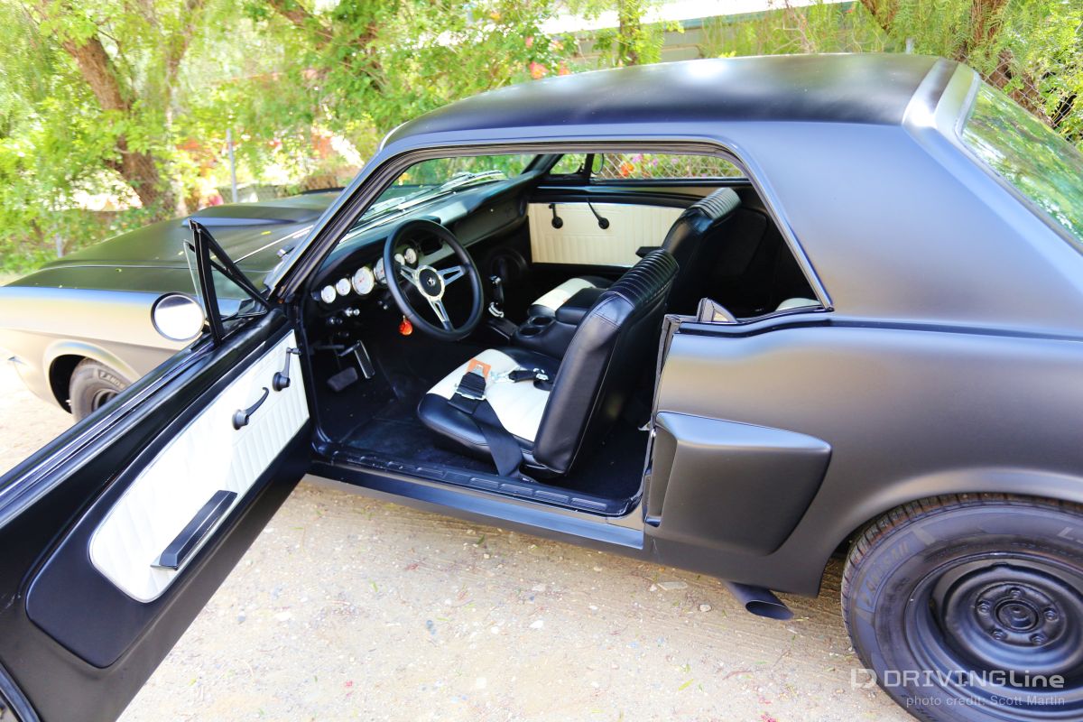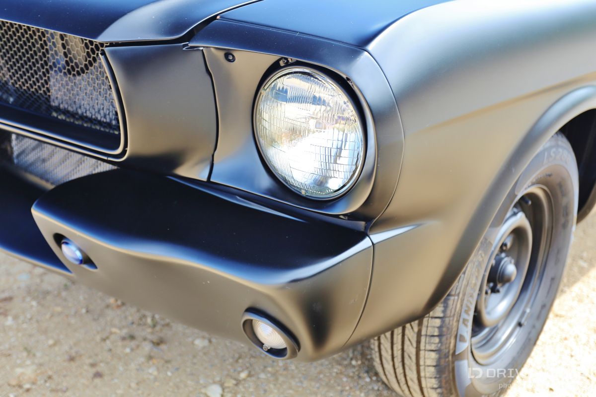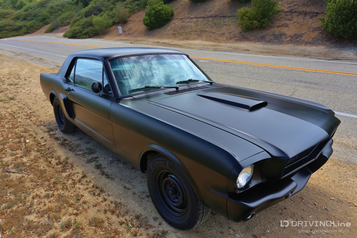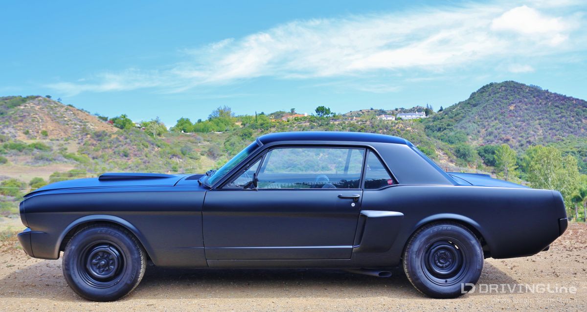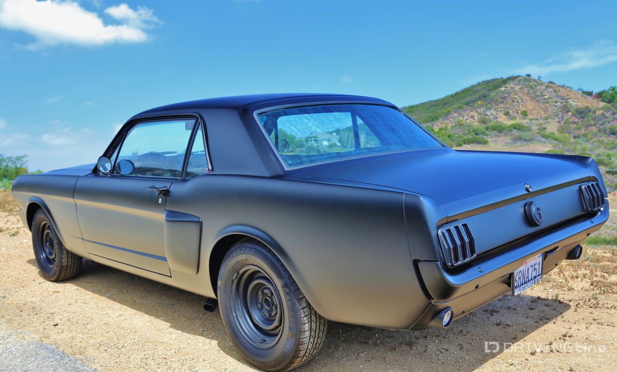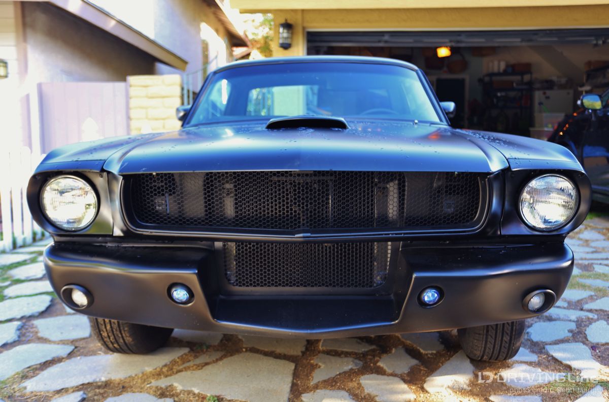 Listening to the throaty growl of the bored out 302 and watching the menacing satin black body glide backward into its place in the line of shiny show cars, you could tell something special was happening. Down slides the window and a hand reaches out to open the matte-black powder coated handle with a mumbled apology, “Inside handle’s the only thing that’s not attached yet.” Out steps a young man with dark glasses, a goatee, with long hair on top and shaved on the sides. Although serious and reserved, you could tell he was very excited… this is the first car show for Jamison Martin and his newly-running 1965 Restomod Mustang (full gallery below). It’s a long story, but as he explains holding up two 8x10 color glossy’s, the first is of him at the age of 14 smiling at the camera and sitting in the Coupe when he and his father first picked it up in Culver City. In the second, he’s sitting in the same position when the Mustang finally came back to the house in drivable condition ten years later. The photos are a time capsule showing how long some car projects can take to finish from beginning to end. The ten year saga really reflects the trials and tribulations of life… the excitement of getting your first car and all the dreams that go with it, and the disappointment of finding out that the body shop has flaked out and left your car in the corner while they work on every other project for two years. The Mustang literally had to be towed out of four different body and mechanics’ to be brought to new locations until the professionals at Mustangs Etc. in Van Nuys finally fixed all that the other shops messed up and completed everything else in the correct way. Not that there’s ever an “end”, because as we all know, a custom car is never truly finished. The Inaugural O’Reilly Street Machine and Muscle Car Nationals in Pomona, California was definitely a great place for a first showing. The huge Fairplex looked like it was filled to capacity and there were amazing hot rods, gassers, dragsters, and customized street machines everywhere… along all the walkways, inside the buildings and lining the makeshift thoroughfares. A constant procession of great-sounding vehicles were cruising around at 5 mph and there was something to do every minute including the Chip Foose Experience, Showcar Alley, a Dyno Challenge, Live Music, Autocross Rally, Mickey Thompson Tire Burnout Contest and even a Miss Street Machine Beauty Contest. One thing Jamison was able to take advantage of on the first day was the Dyno Challenge. It was exciting to finally see what the horsepower would be… he had no idea. It was a little disappointing, though, because it turned out the carburetor was running way too rich so they couldn’t get a good reading. He was going to do the Tire Burnout contest but with those results, it was possible to do real damage to the engine or cause a fire, so he decided to pass… bummer! Also the timed Autocross looked like a lot of fun, but the car is a base early-build 1965 model without air conditioning and with manual steering, so there was no way to do the type of turning needed in that type of tight course… bummer again! Although Jamison and the Restomod did not win any awards at the show, he definitely received a lot of verification of the build. So many people were very supportive in mentioning all the different aspects and details that they liked about the car. One standout was the paint job, a special one-step process Satin Black finish. People were also impressed that all chrome on the vehicle had been powder-coated matte-black to match the exterior and interior paint. Jamison received a lot of positive comments about the body modifications including the side air scoops which are similar to the CS or California Special Mustang series, plus the front valence which is molded to mirror the Shelby GT models. Other favorites included the interior which is also finished in Satin Black with black and crème reproduction Pony seating and custom instrument cluster plus tilt column steering wheel. With the hood up at all times, that was what first caught everyone’s attention, because, while not flashy with chrome, the whole setup is super clean between the 302 Ford-racing valve covers and Edelbrock air cleaner with a 650 cfm Edelbrock carburetor beneath it linked to Edelbrock intake manifolds. Ceramic coated Hooker Headers end in 3 inch pipes that are connected through custom made x-pipe to same-side-in, same-side-out Dynamax mufflers leading to a ceramic black coated 2 1/2 inch oval pipe outlet between the door and rear tire… All creating a great semi-racing sound that roars when you want it and purrs (like a Lion) the rest of the time. When Jamison first got it in 2003, the Mustang wasn’t running, but it had a 289 and the plan was to rebuild the engine to a 302 anyway. The body was really straight and all the parts were there, even though many were in boxes. You could tell from under the seats that the car was originally Twilight Turquoise Metallic and it had a vinyl top, but then it was painted some type of orange color inside and out, some of it obviously with spray cans. In an interview with now-24-year-old-Jamison, he laid out the original plans for the 1965 Mustang Coupe, saying, “I could picture in my mind even at that young age how it would look in flat black, and that was before everyone was doing matte black paint jobs. It’s just a bummer that the car took so long to get running after the body and paint was finished! At least the Black Satin paint is really unique and a lot of work was put into making the body perfect by B&E Customs in Chatsworth before they finished it with their specially developed one-step process.” Special thanks to Colby Martin and Bryan Harrison of SEMA and SAN (SEMA Action Network) for making it possible to exhibit the vehicle and participate in all the weekend activities. Even Jamison’s brother Chase got to come out an