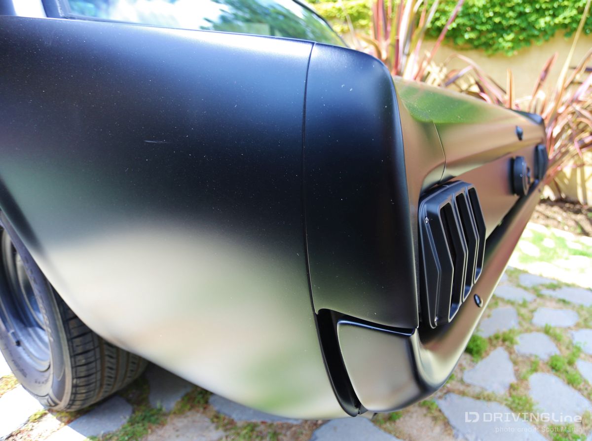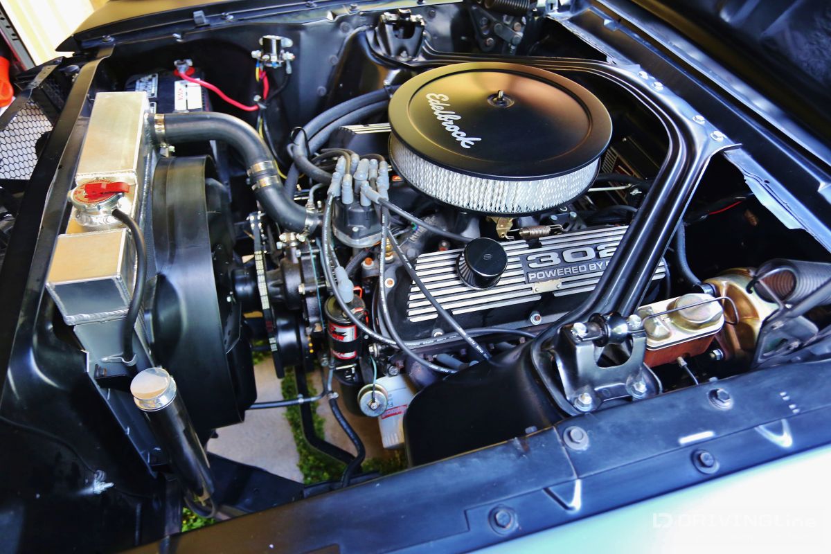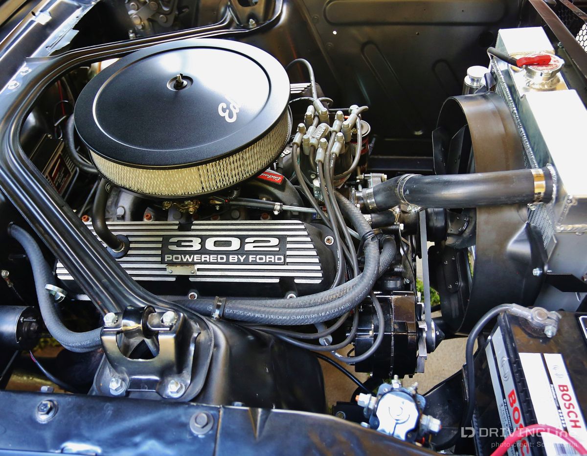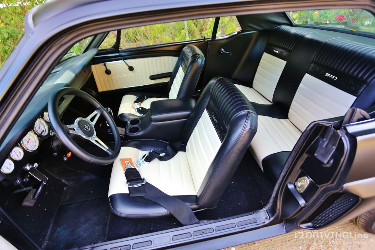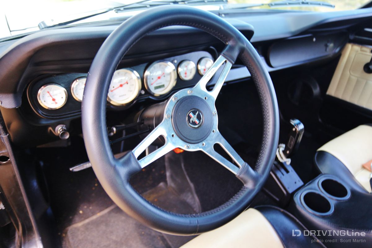 Listening to the throaty growl of the bored out 302 and watching the menacing satin black body glide backward into its place in the line of shiny show cars, you could tell something special was happening. Down slides the window and a hand reaches out to open the matte-black powder coated handle with a mumbled apology, “Inside handle’s the only thing that’s not attached yet.” Out steps a young man with dark glasses, a goatee, with long hair on top and shaved on the sides. Although serious and reserved, you could tell he was very excited… this is the first car show for Jamison Martin and his newly-running 1965 Restomod Mustang (full gallery below). It’s a long story, but as he explains holding up two 8x10 color glossy’s, the first is of him at the age of 14 smiling at the camera and sitting in the Coupe when he and his father first picked it up in Culver City. In the second, he’s sitting in the same position when the Mustang finally came back to the house in drivable condition ten years later. The photos are a time capsule showing how long some car projects can take to finish from beginning to end. The ten year saga really reflects the trials and tribulations of life… the excitement of getting your first car and all the dreams that go with it, and the disappointment of finding out that the body shop has flaked out and left your car in the corner while they work on every other project for two years. The Mustang literally had to be towed out of four different body and mechanics’ to be brought to new locations until the professionals at Mustangs Etc. in Van Nuys finally fixed all that the other shops messed up and completed everything else in the correct way. Not that there’s ever an “end”, because as we all know, a custom car is never truly finished. The Inaugural O’Reilly Street Machine and Muscle Car Nationals in Pomona, California was definitely a great place for a first showing. The huge Fairplex looked like it was filled to capacity and there were amazing hot rods, gassers, dragsters, and customized street machines everywhere… along all the walkways, inside the buildings and lining the makeshift thoroughfares. A constant procession of great-sounding vehicles were cruising around at 5 mph and there was something to do every minute including the Chip Foose Experience, Showcar Alley, a Dyno Challenge, Live Music, Autocross Rally, Mickey Thompson Tire Burnout Contest and even a Miss Street Machine Beauty Contest. One thing Jamison was able to take advantage of on the first day was the Dyno Challenge. It was exciting to finally see what the horsepower would be… he had no idea. It was a little disappointing, though, because it turned out the carburetor was running way too rich so they couldn’t get a good reading. He was going to do the Tire Burnout contest but with those results, it was possible to do real damage to the engine or cause a fire, so he decided to pass… bummer! Also the timed Autocross looked like a lot of fun, but the car is a base early-build 1965 model without air conditioning and with manual steering, so there was no way to do the type of turning needed in that type of tight course… bummer again! Although Jamison and the Restomod did not win any awards at the show, he definitely received a lot of verification of the build. So many people were very supportive in mentioning all the different aspects and details that they liked about the car. One standout was the paint job, a special one-step process Satin Black finish. People were also impressed that all chrome on the vehicle had been powder-coated matte-black to match the exterior and interior paint. Jamison received a lot of positive comments about the body modifications including the side air scoops which are similar to the CS or California Special Mustang series, plus the front valence which is molded to mirror the Shelby GT models. Other favorites included the interior which is also finished in Satin Black with black and crème reproduction Pony seating and custom instrument cluster plus tilt column steering wheel. With the hood up at all times, that was what first caught everyone’s attention, because, while not flashy with chrome, the whole setup is super clean between the 302 Ford-racing valve covers and Edelbrock air cleaner with a 650 cfm Edelbrock carburetor beneath it linked to Edelbrock intake manifolds. Ceramic coated Hooker Headers end in 3 inch pipes that are connected through custom made x-pipe to same-side-in, same-side-out Dynamax mufflers leading to a ceramic black coated 2 1/2 inch oval pipe outlet between the door and rear tire… All creating a great semi-racing sound that roars when you want it and purrs (like a Lion) the rest of the time. When Jamison first got it in 2003, the Mustang wasn’t running, but it had a 289 and the plan was to rebuild the engine to a 302 anyway. The body was really straight and all the parts were there, even though many were in boxes. You could tell from under the seats that the car was originally Twilight Turquoise Metallic and it had a vinyl top, but then it was painted some type of orange color inside and out, some of it obviously with spray cans. In an interview with now-24-year-old-Jamison, he laid out the original plans for the 1965 Mustang Coupe, saying, “I could picture in my mind even at that young age how it would look in flat black, and that was before everyone was doing matte black paint jobs. It’s just a bummer that the car took so long to get running after the body and paint was finished! At least the Black Satin paint is really unique and a lot of work was put into making the body perfect by B&E Customs in Chatsworth before they finished it with their specially developed one-step process.” Special thanks to Colby Martin and Bryan Harrison of SEMA and SAN (SEMA Action Network) for making it possible to exhibit the vehicle and participate in all the weekend activities. Even Jamison’s brother Chase got to come out an