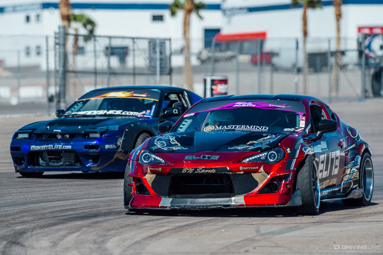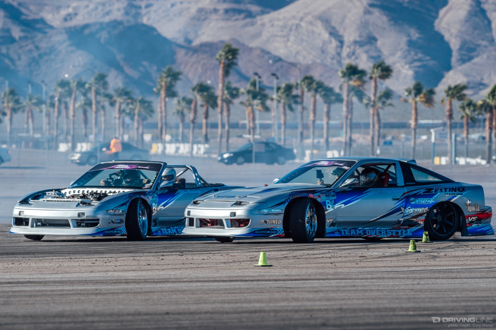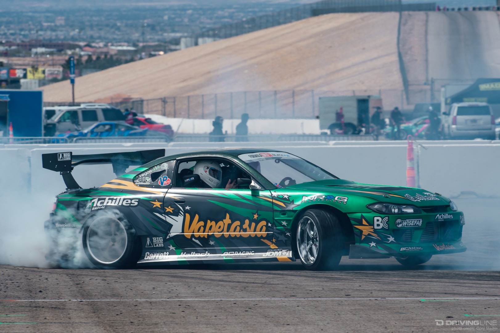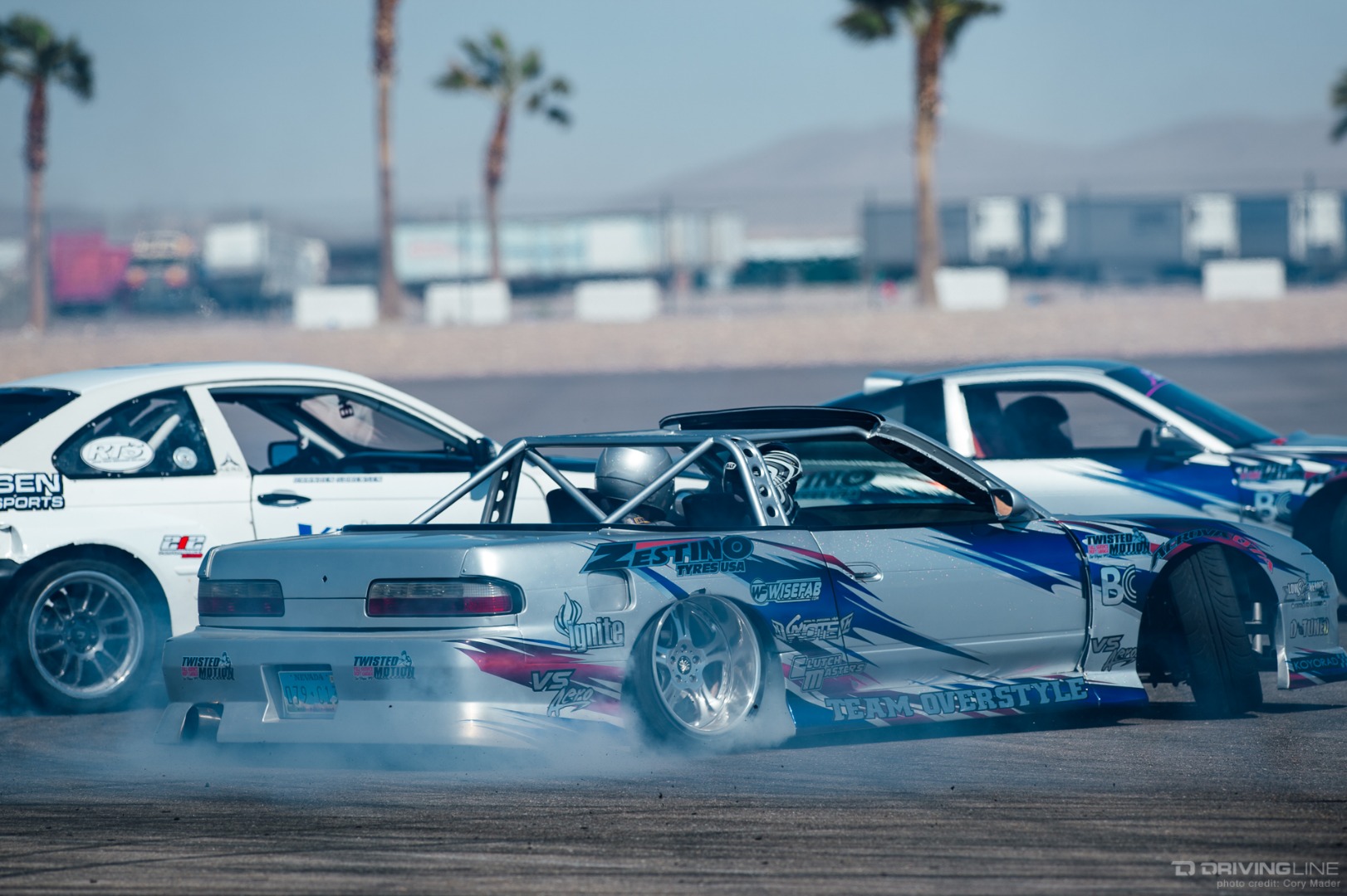 As the weekend continued, drivers got progressively more comfortable, upping the ante with increasingly longer trains and slamming together tight tandems through the technical turns with ease. Luckily, nobody completely cashed in their chips before shredding through Day 2 of the event—paint scuffs, a couple lost bumpers and some totaled tires were all Tamada claimed. Let's be honest, a trip to Vegas usually costs a lot more!