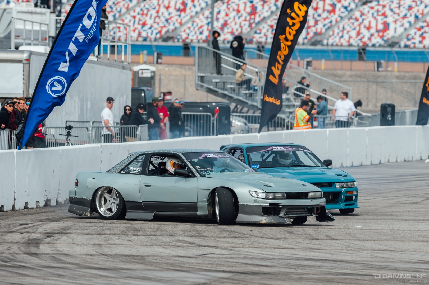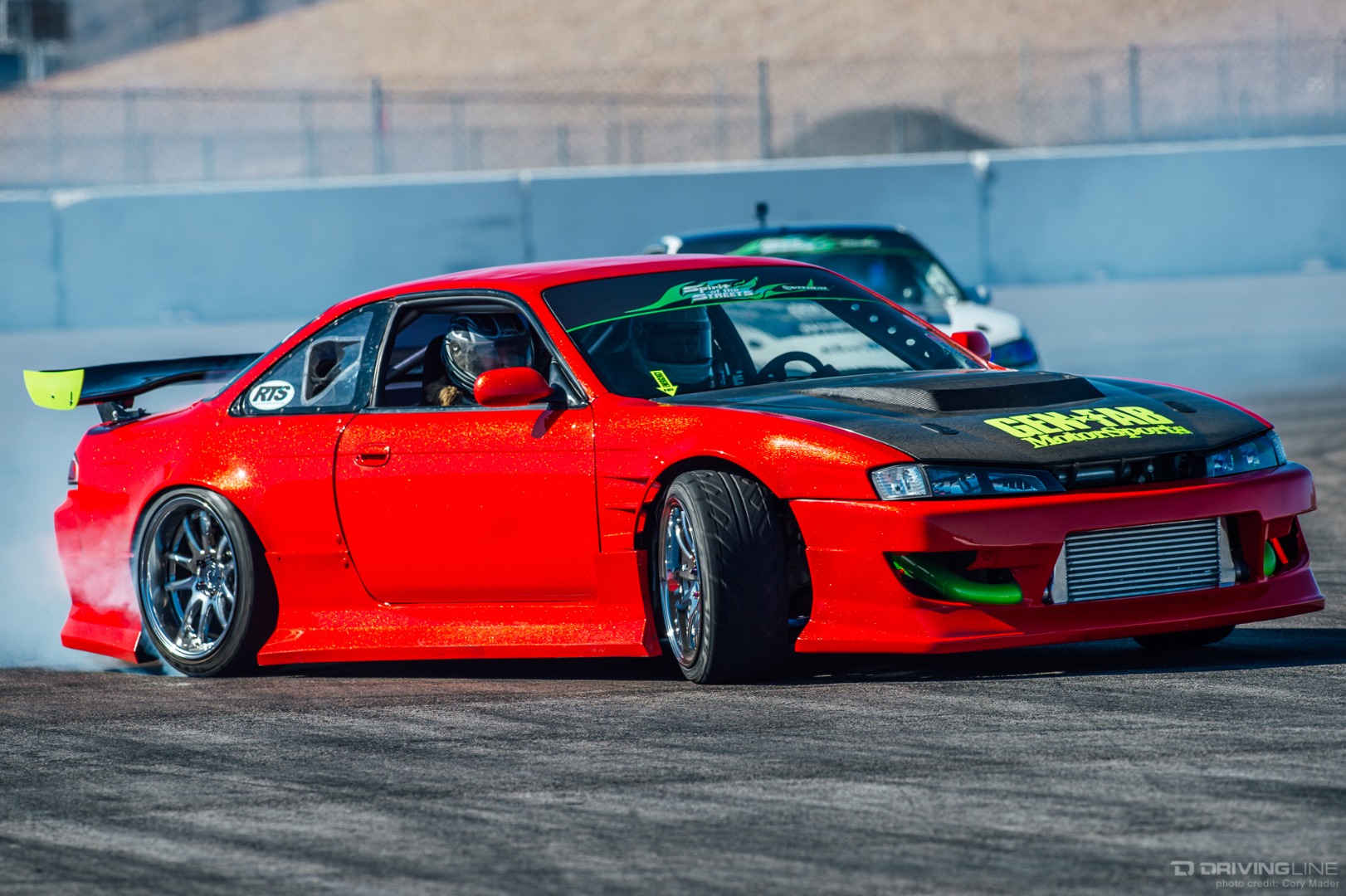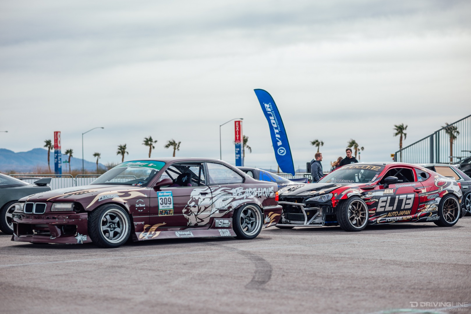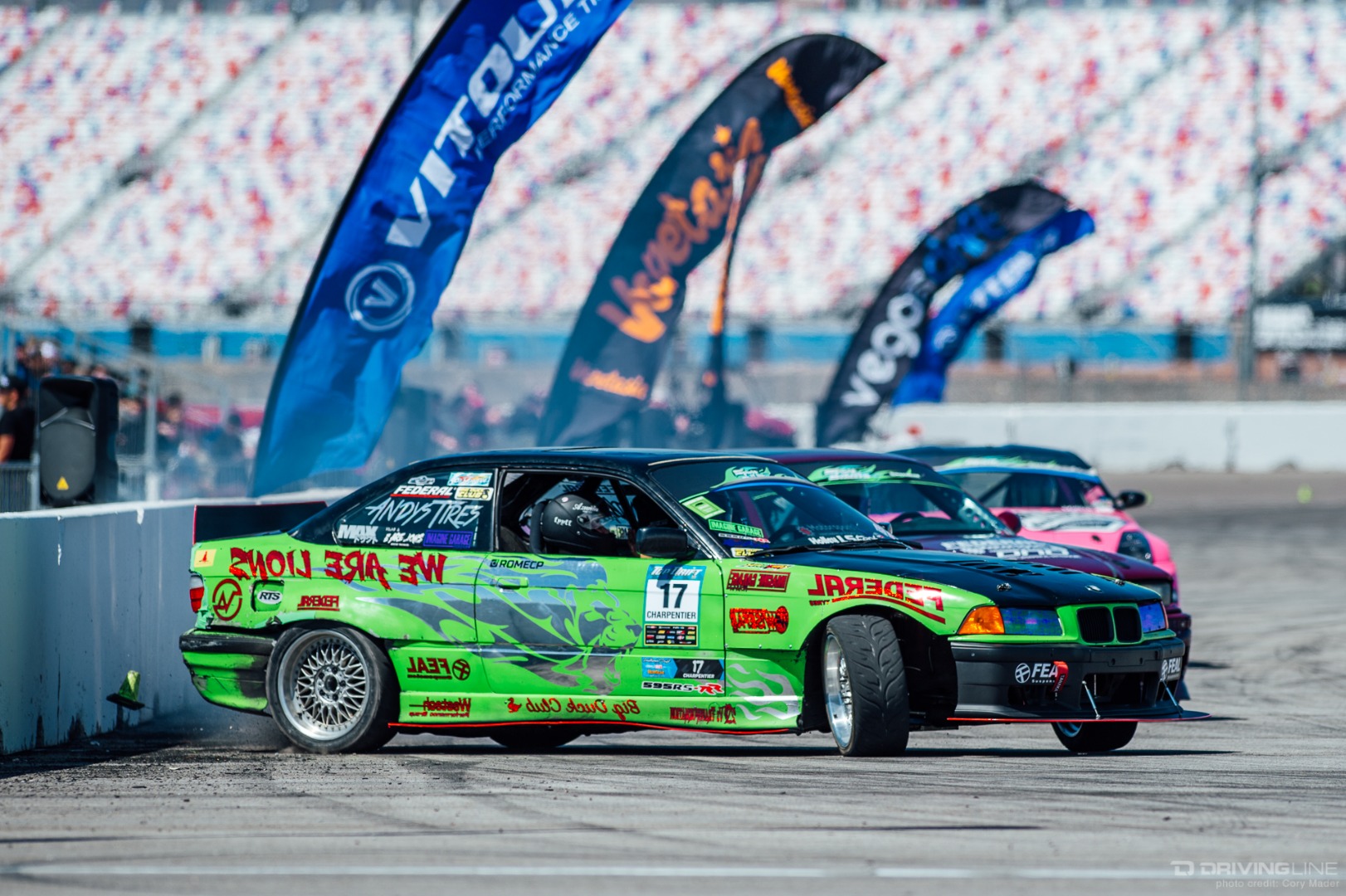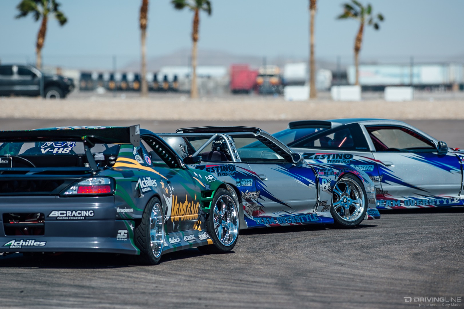As the weekend continued, drivers got progressively more comfortable, upping the ante with increasingly longer trains and slamming together tight tandems through the technical turns with ease. Luckily, nobody completely cashed in their chips before shredding through Day 2 of the event—paint scuffs, a couple lost bumpers and some totaled tires were all Tamada claimed. Let's be honest, a trip to Vegas usually costs a lot more!