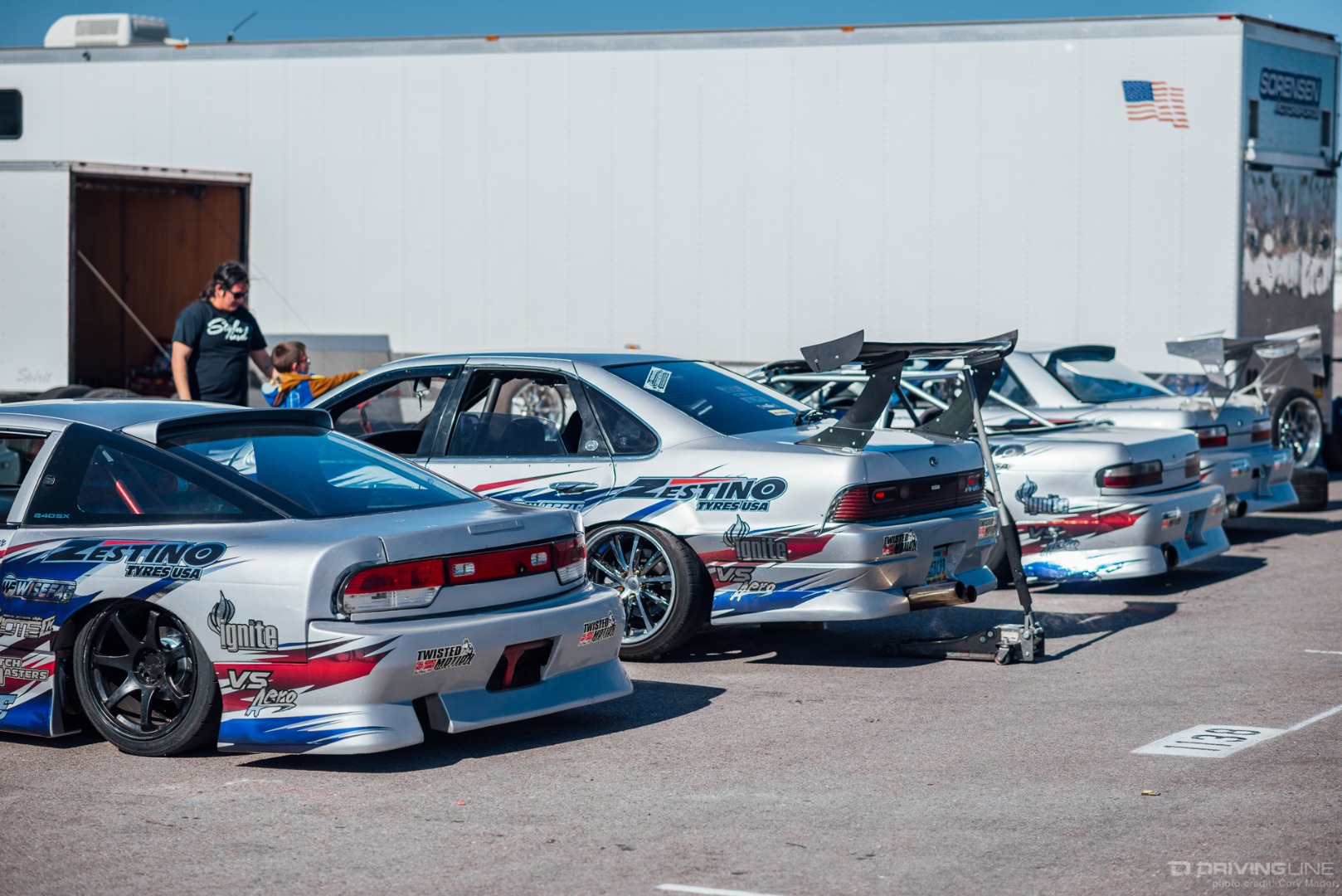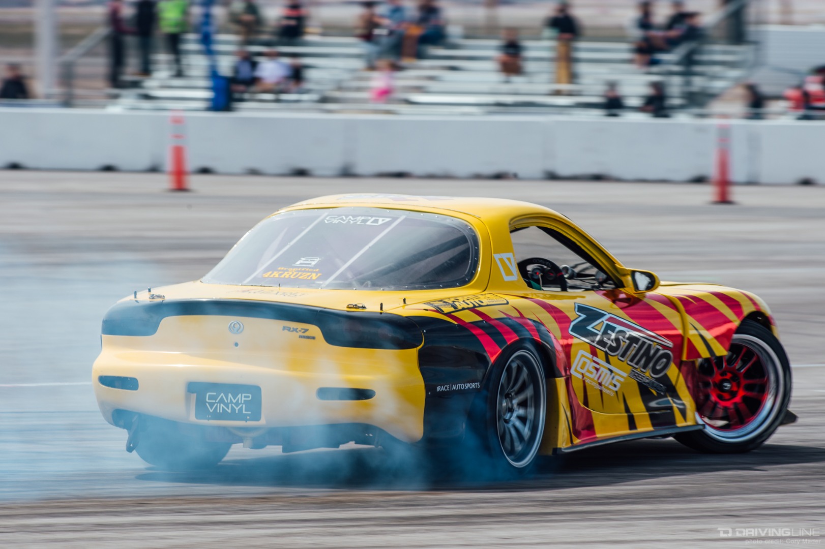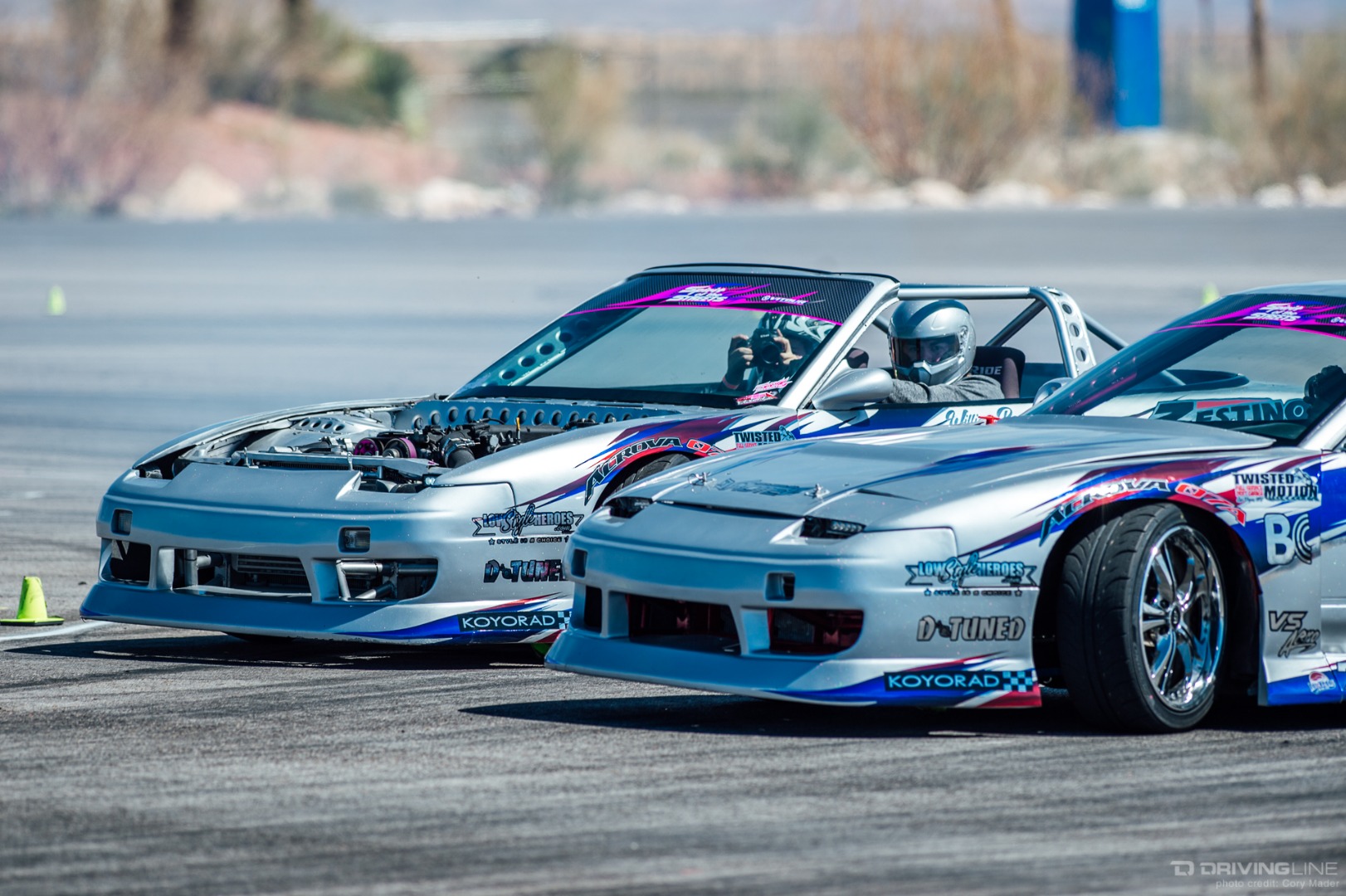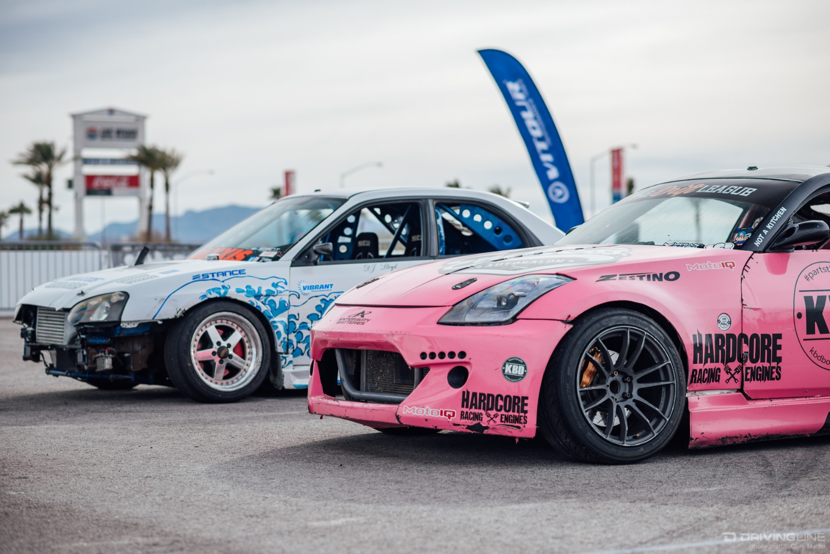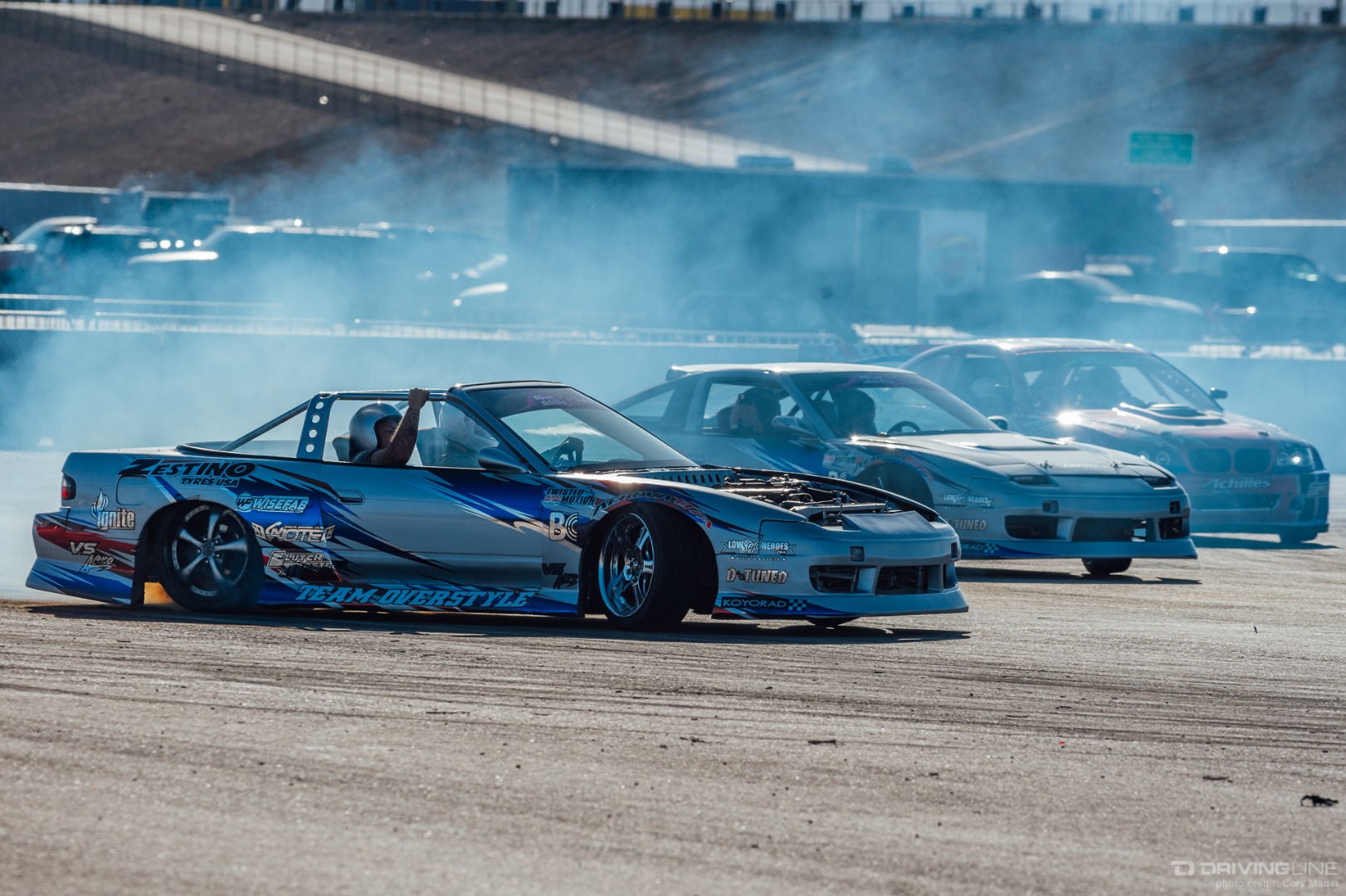 As the weekend continued, drivers got progressively more comfortable, upping the ante with increasingly longer trains and slamming together tight tandems through the technical turns with ease. Luckily, nobody completely cashed in their chips before shredding through Day 2 of the event—paint scuffs, a couple lost bumpers and some totaled tires were all Tamada claimed. Let's be honest, a trip to Vegas usually costs a lot more!