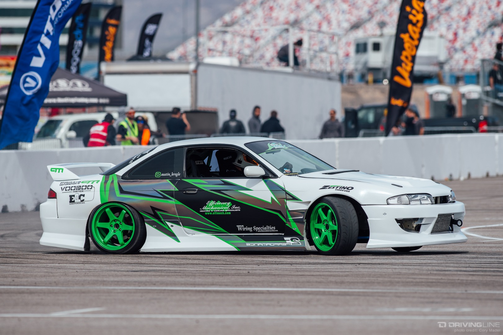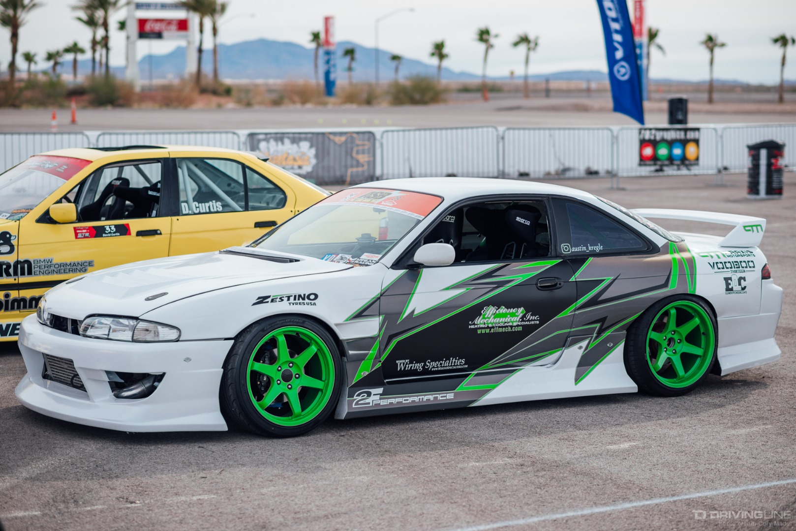 Drivers from all over the southwest came to test their might throughout the course, with skill levels ranging from intermediate to Formula Drift Pro. Although the day was initially set up with four run groups, the drivers eventually mixed and mingled to take full advantage of the hot lapping setup for maximum seat time.