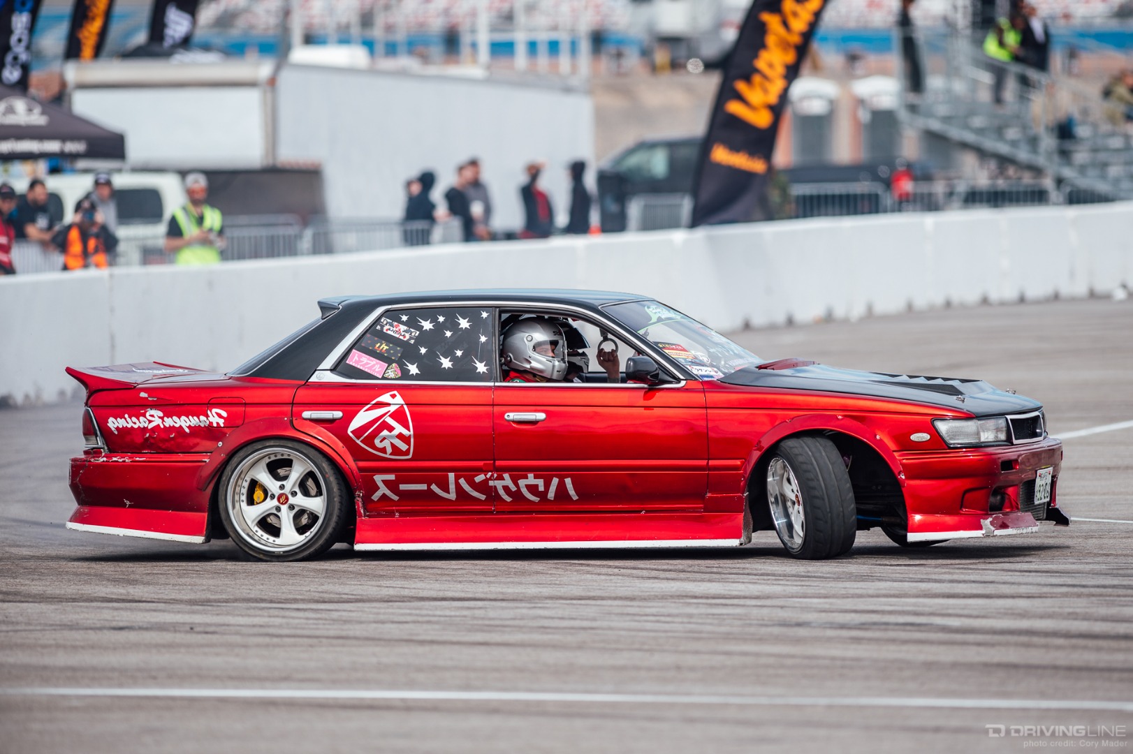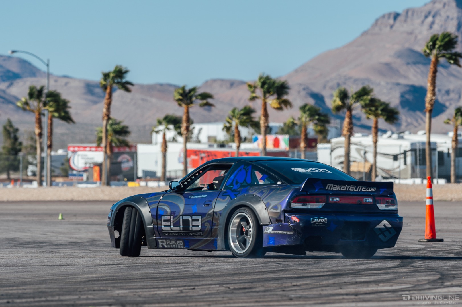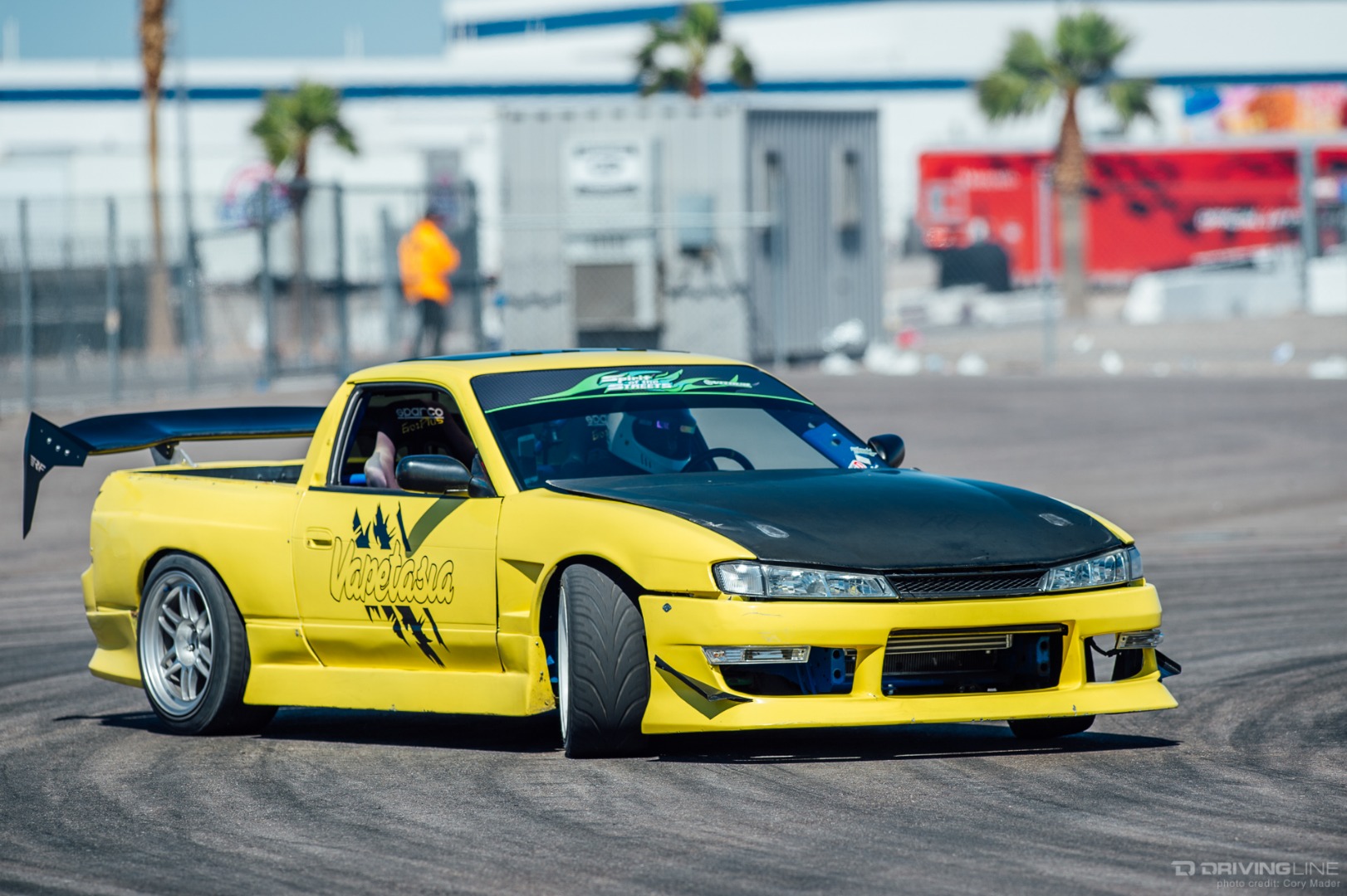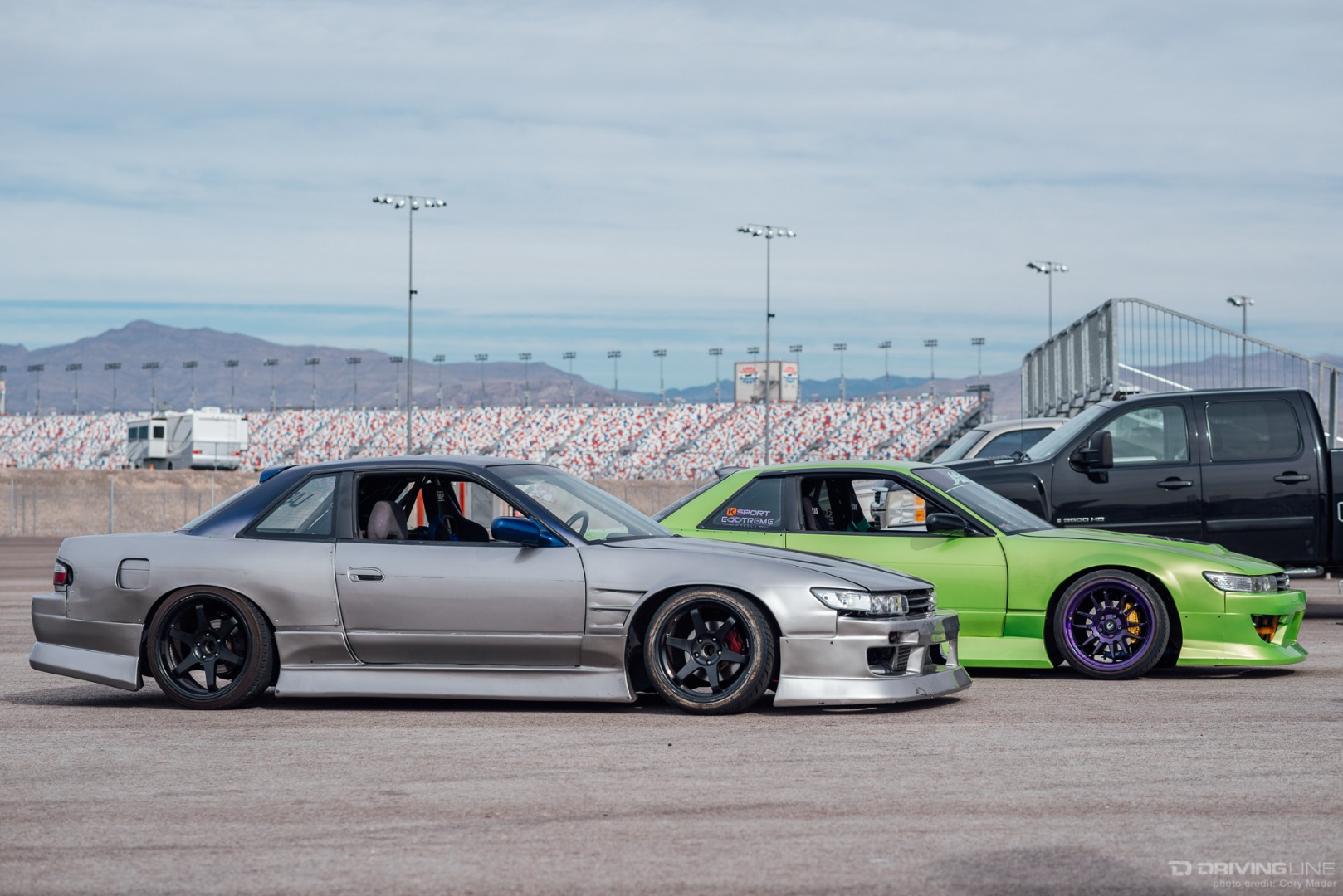 If you can't make it to some special track, maybe someone can bring the track to you. The latest result of this track replica movement is a 1:1 recreation of Tamada Sportsland, complete with the signature high speed front straight entry. While the original may be a go-kart track situated in the woods of Hiroshima, the swaying palms and rows of seating from Las Vegas Motor Speedway give this edition a distinctly American feel. That being said, each turn was faithfully recreated down to mere feet by the Vegas Drift staff, with K-Rails taking the place of the small rumble strips and tire walls of Tamada.