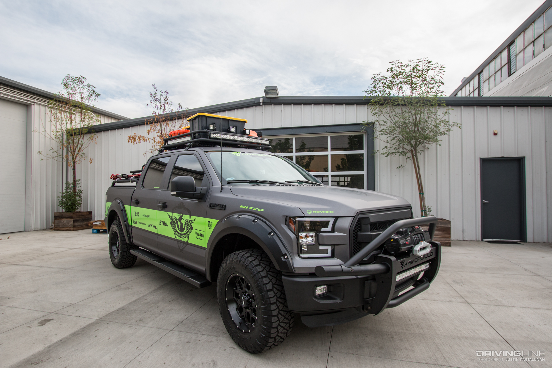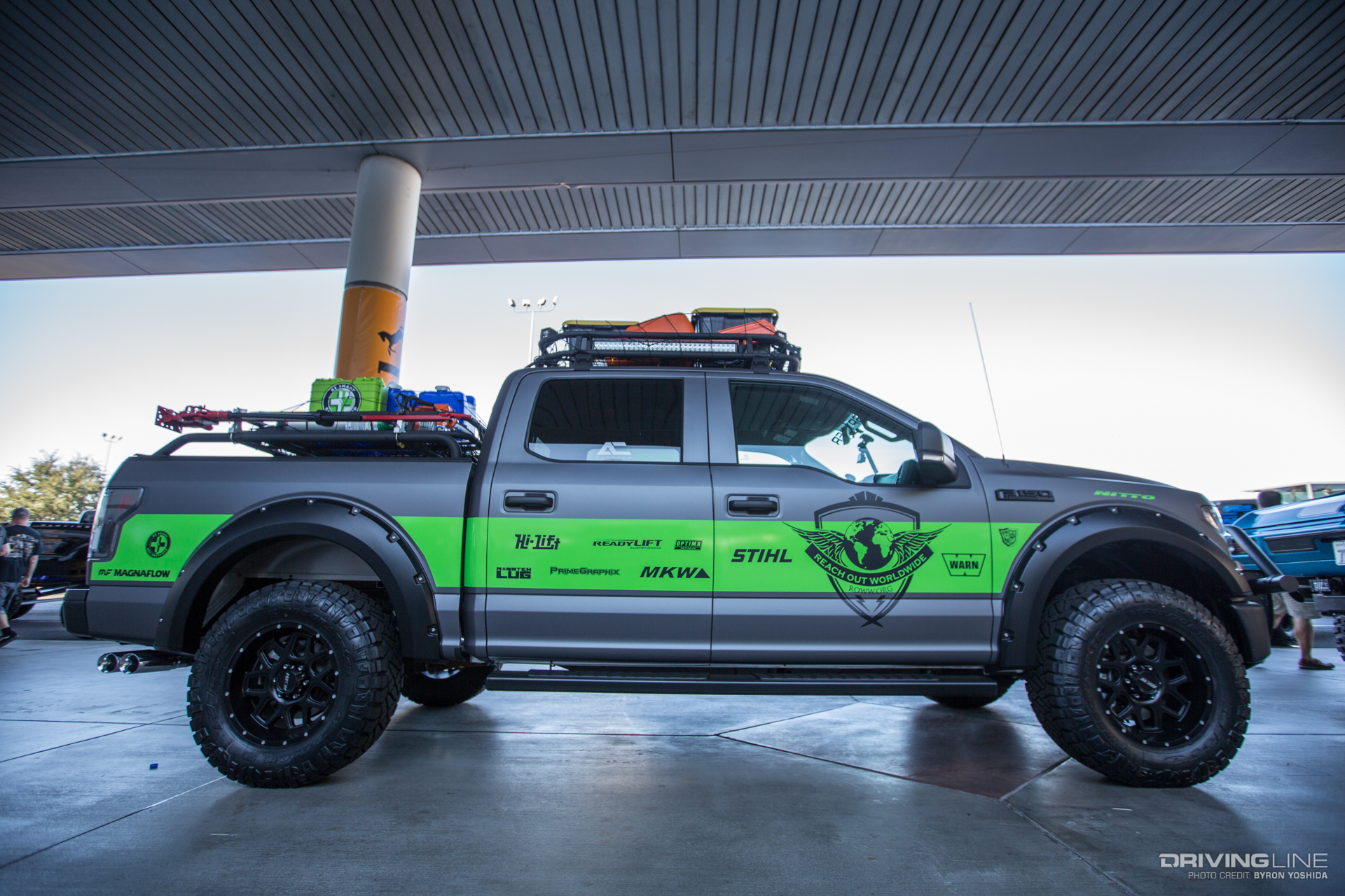 Outrageous cars and trucks scatter around the Las Vegas Convention Center every year for the SEMA Show, most of them leaving spectators in shock and "huh?" Amongst the wildness, one build peaked our interested for a whole other reason. The Reach Out Worldwide-inspired Ford F-150 built by Armordillo USA is as amazing functionally as it is visually. From the chainsaws to the Nitto Ridge Grapplers, every part of this truck is there for a purpose. That purpose is to be able provide support in areas where relief efforts are most needed.