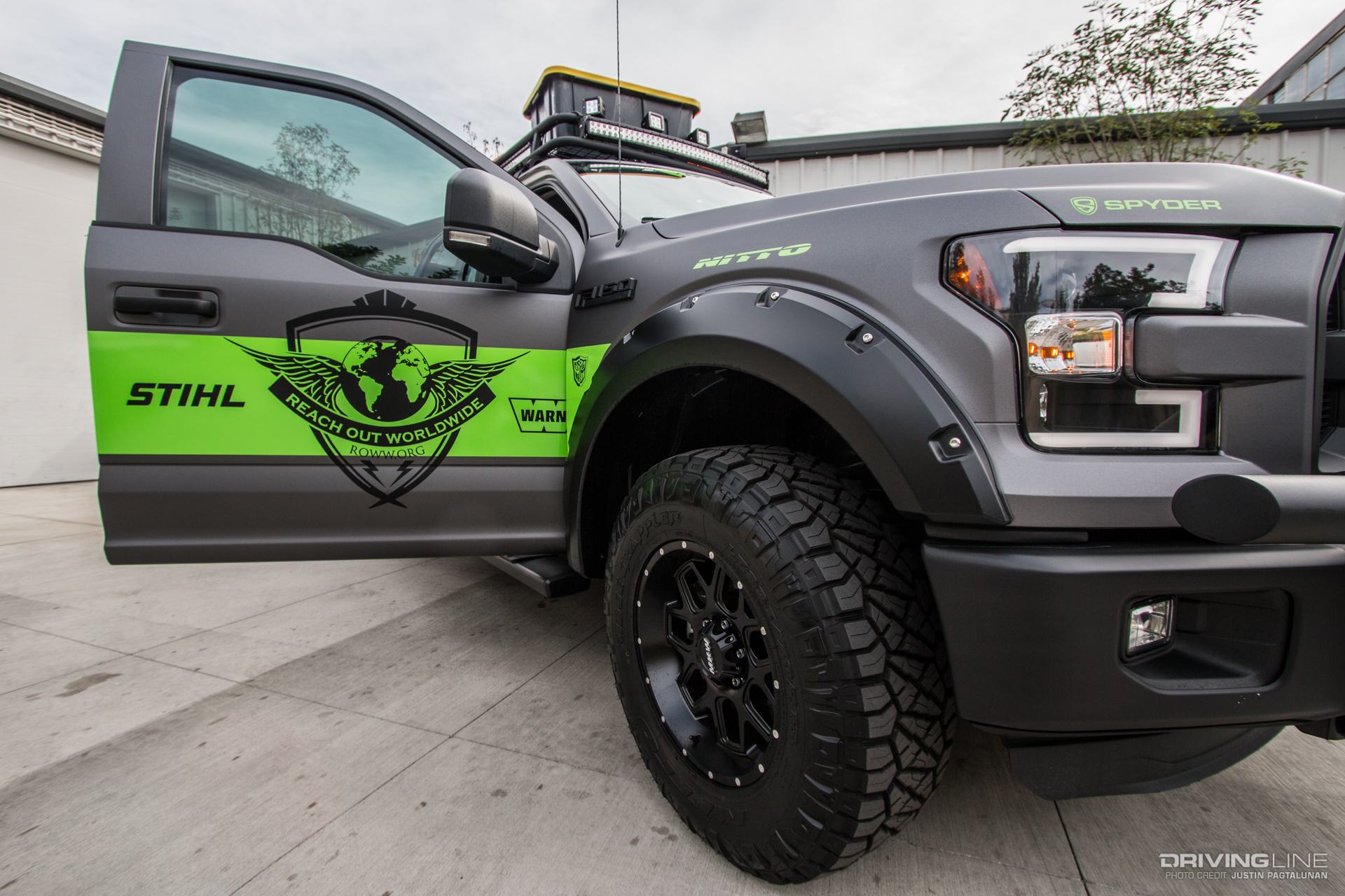 To complete the build, the entire truck is wrapped in Avery Dennison satin black, which happens to also be one of Paul's personal favorite vehicle colors. The neon green stripe along the side is not only there to allow the truck stand out as a beacon of help when out in the field, but also to highlight ROWW and all the sponsors who helped make this truck possible.