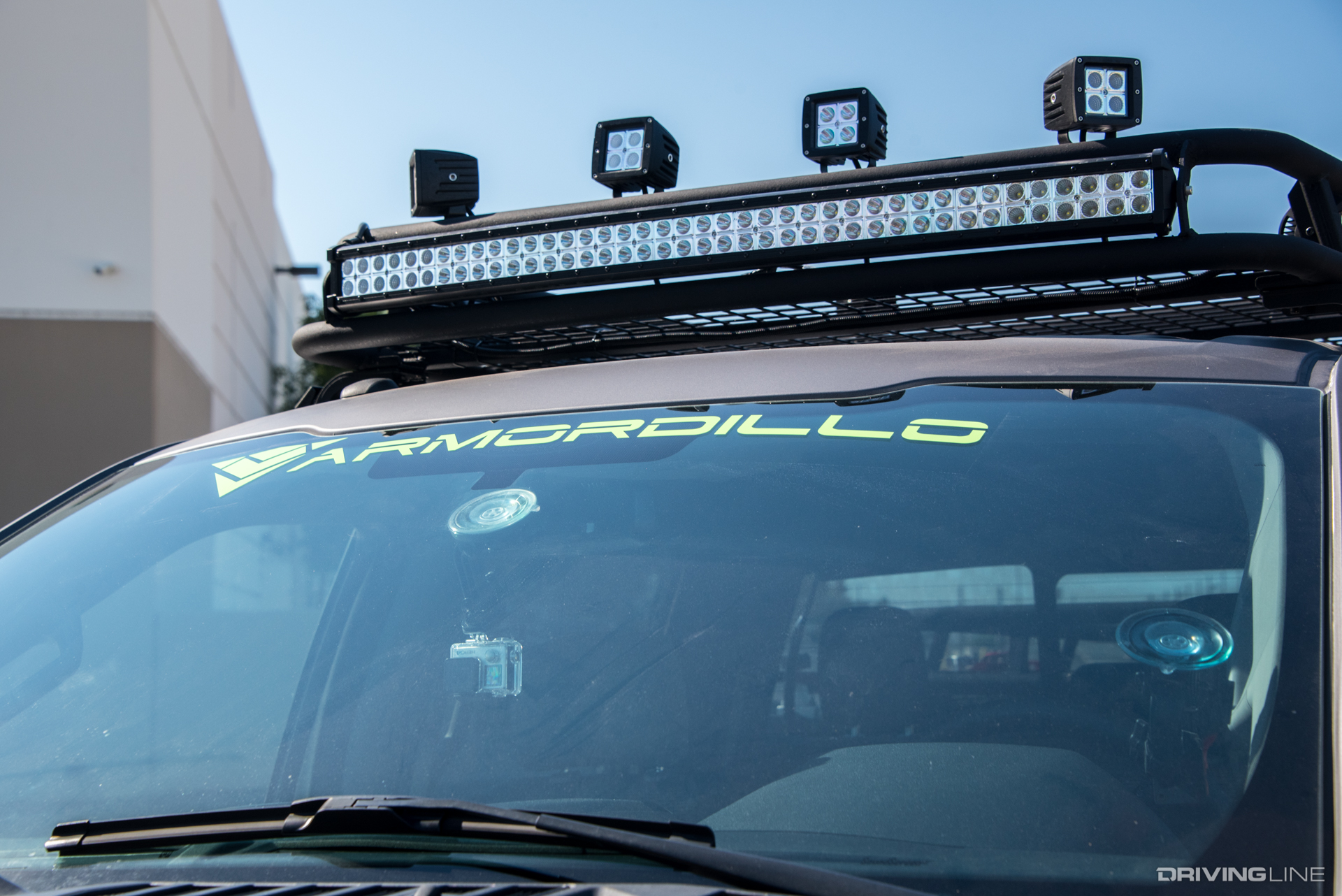 With all that equipment, they had to find a place to store it that is both secure and easily accessible; here is where Armordillo USA's expertise came into play. Not only did they design and fabricate the pre-runner guard in the front, but they also made these racks to go on the roof and over the bed of the truck. Equipment or supplies, these racks are more than strong enough to transport just about anything they might need. The roof rack also has a 360º LED light bar installed, bright enough to turn night into day.