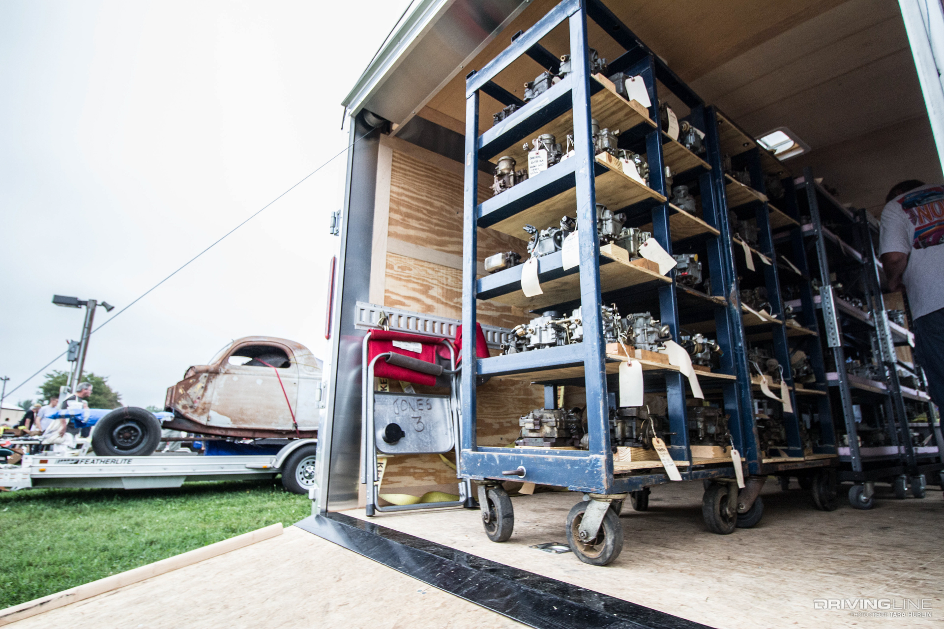 This traditional, historic hot rod from Ontario, Canada, is a 1934 Ford roadster powered by a Ford four-cylinder with Eddie Meyer side-draft carburetors. The owner, wearing a period-correct leather aviator cap, was seen circling the grounds and stopping to smile for photos, and he caught up to us right before we headed into the swap meet.