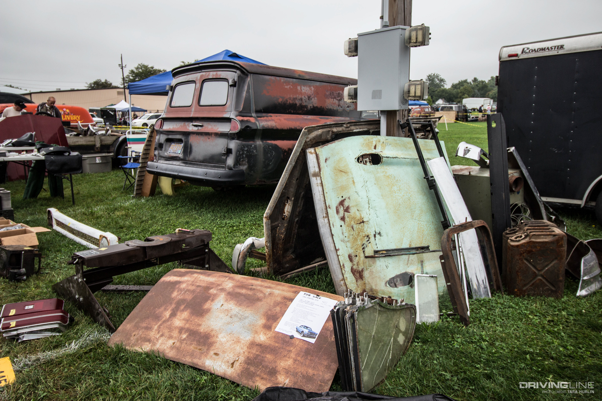 Right after I scored a set of early-'60s Cadillac emblems, I turned to see what may not have been the best deal of the meet, but it was undoubtedly the most entertaining. A humorous note was taped to this disheveled 1930s Ford humpback sedan.
