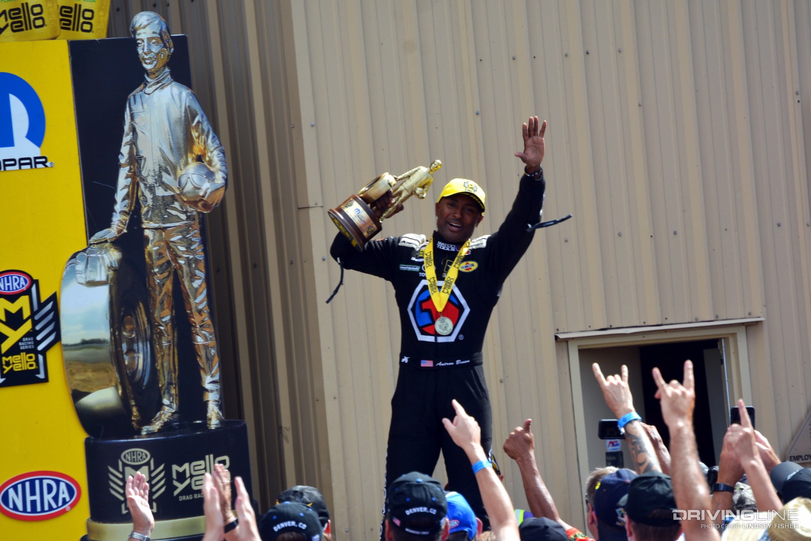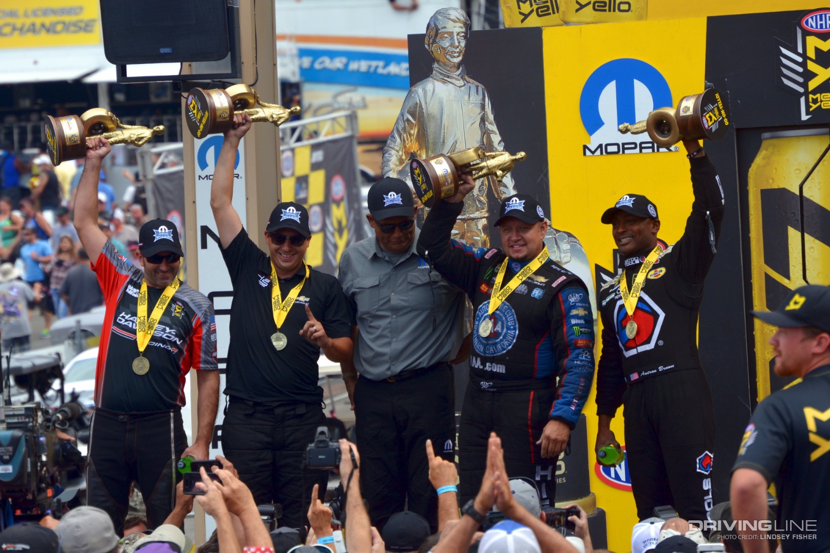When all was said and done, it was Top Fuel driver Antron Brown, Funny Car driver Robert Hight, Pro Stock driver Drew Skillman and Pro Stock Motorcyclist Eddie Krawiec who took home top honors for their class and shared the stage at the conclusion of the event, Wallies in hand.