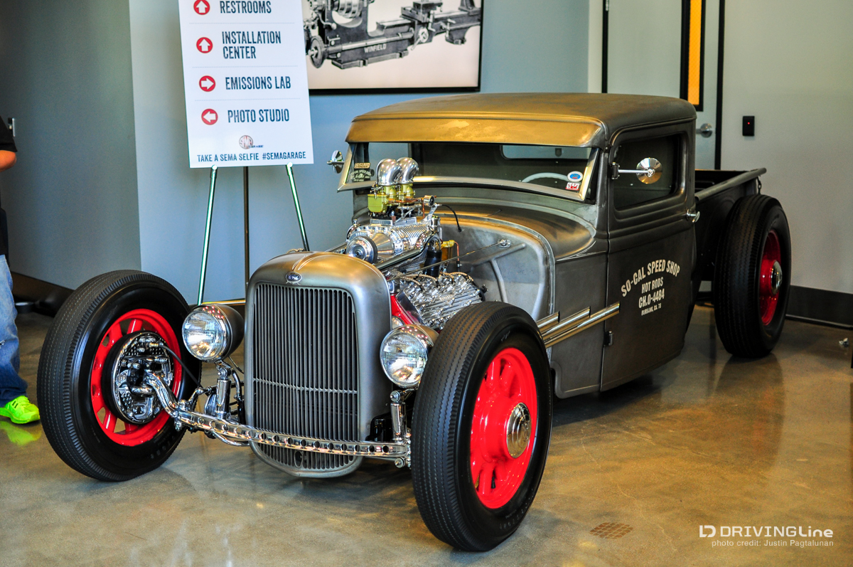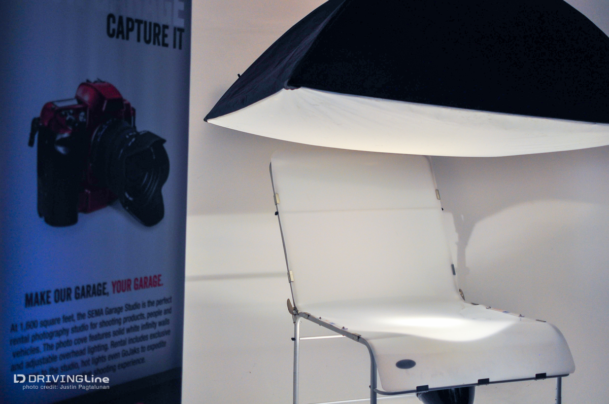 A couple months ago we got to take a tour of the early stages of the newly renovated SEMA Garage in Diamond Bar, CA. With the finishing touches all set, we're back for the SEMA Garage Open House - with close to 1,000 people registered to attend, wow is it packed! After checking in (and snapping a few selfies... I'll explain later), the photographer in me wanted to see how the finished photo studio turned out...